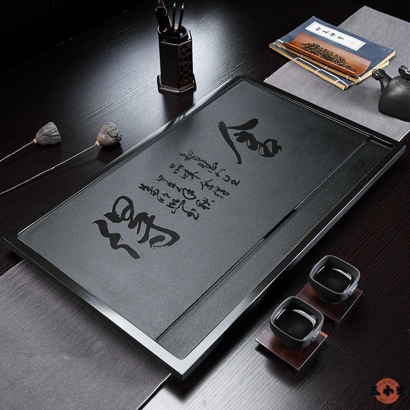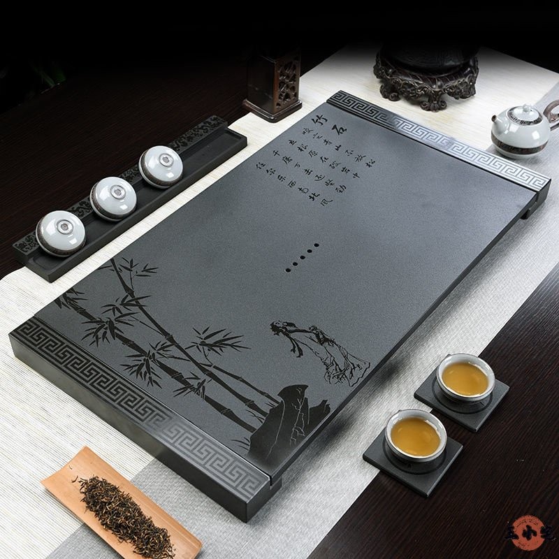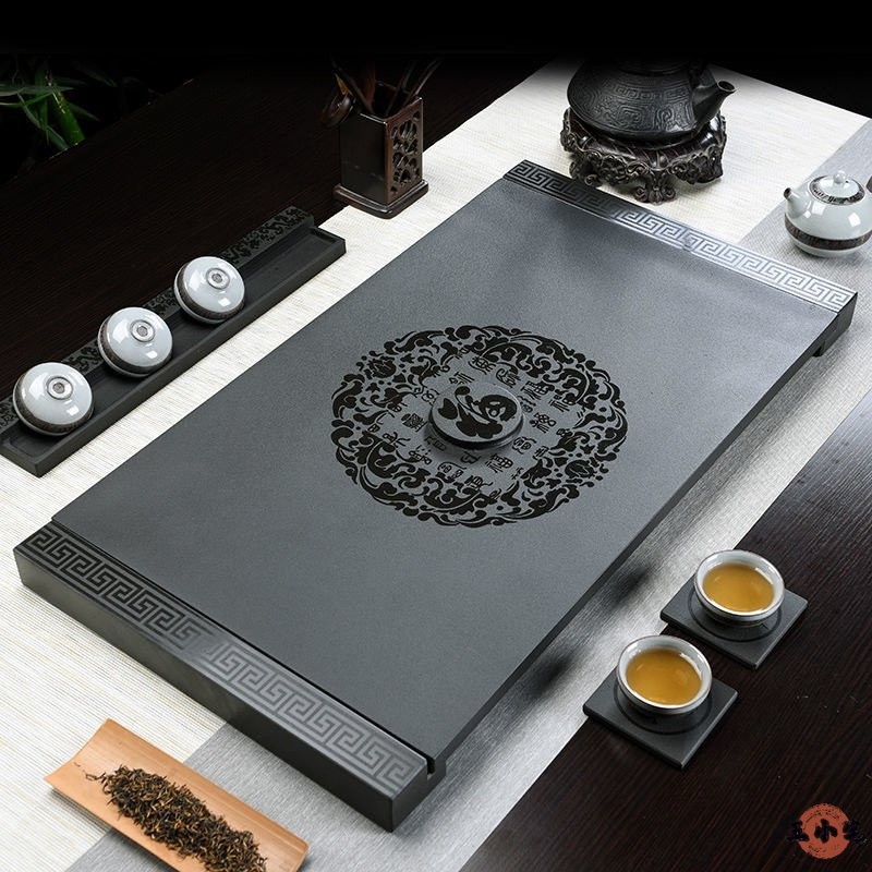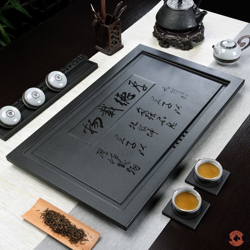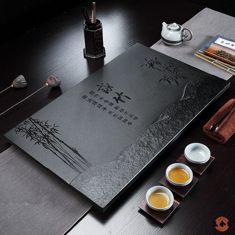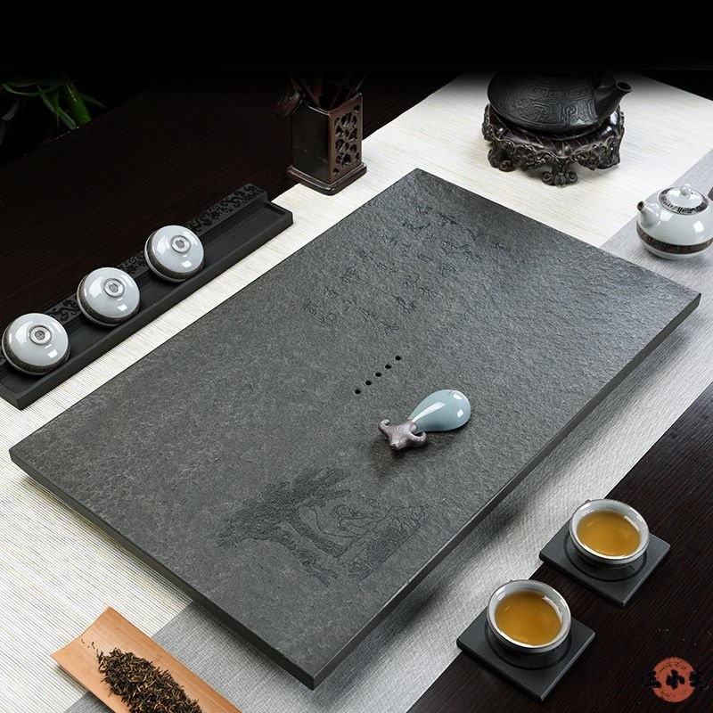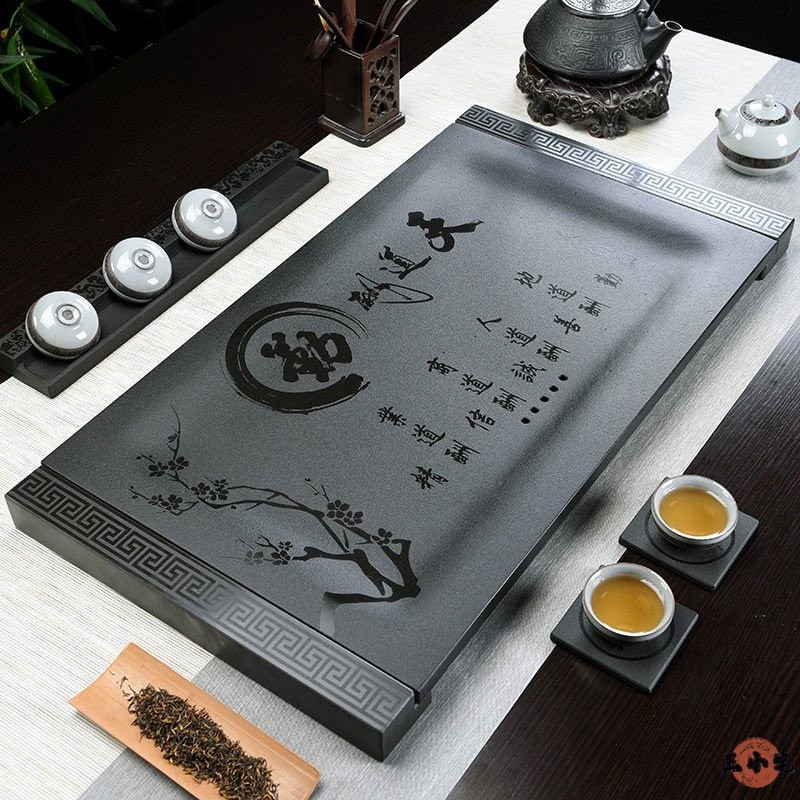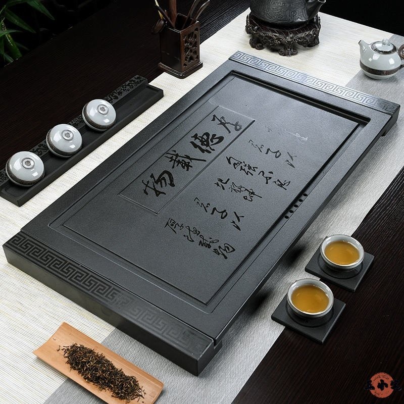 安安家具烏金石茶盤 整塊天然烏金石茶臺 簡約家用長方形大小號石頭黑金石茶臺茶具茶盤 客廳功夫茶臺 茶具托盤定制XH