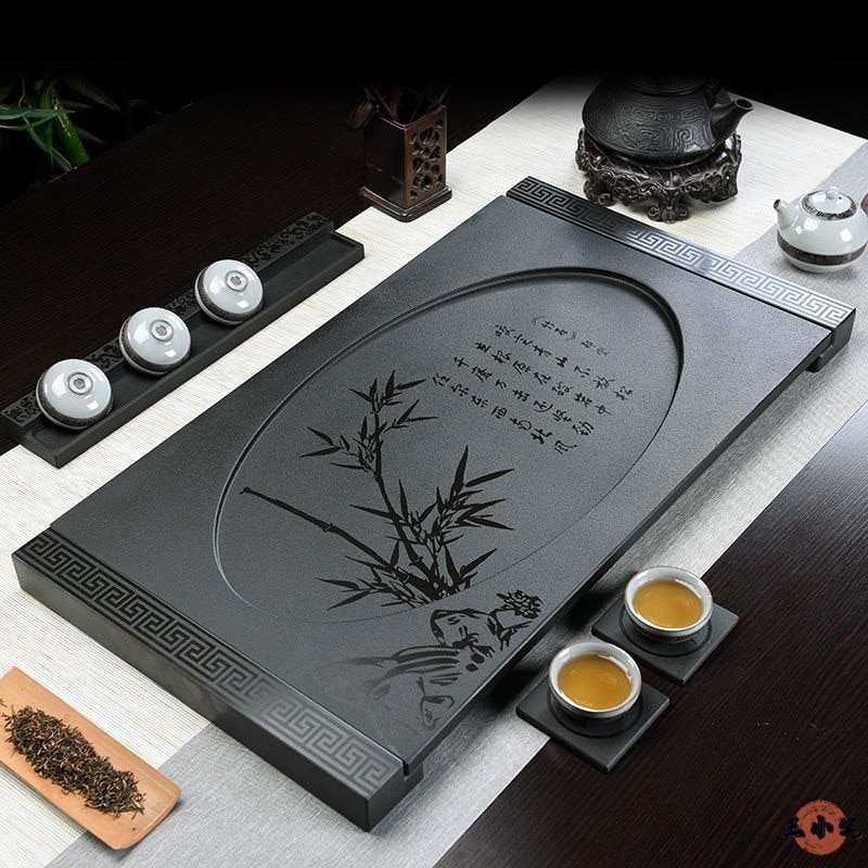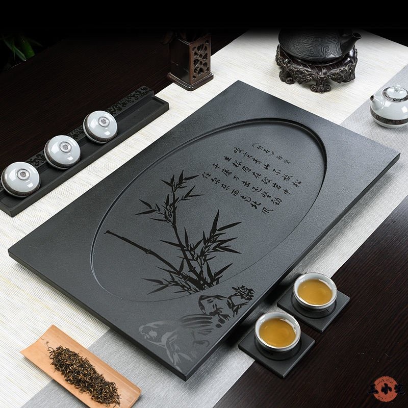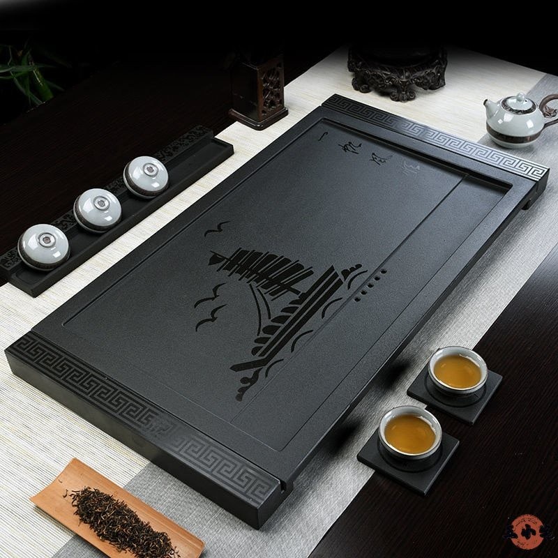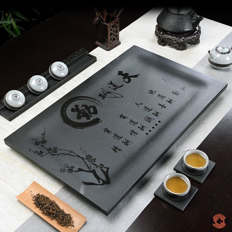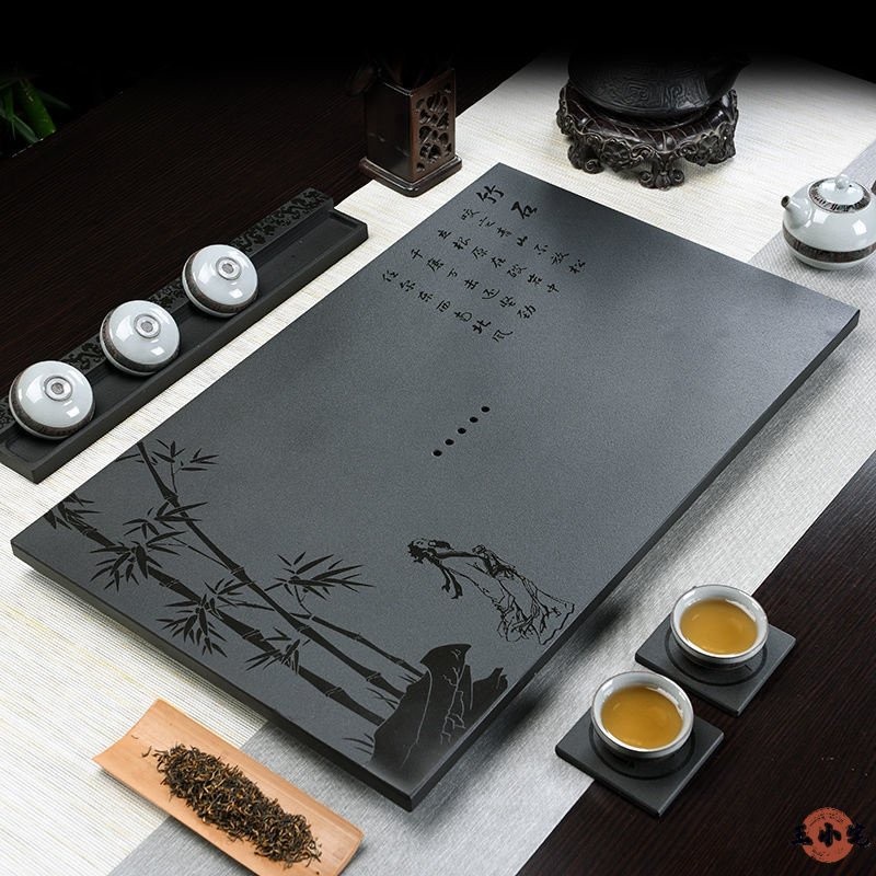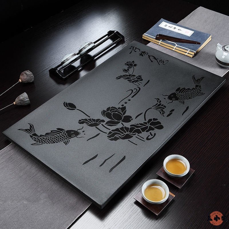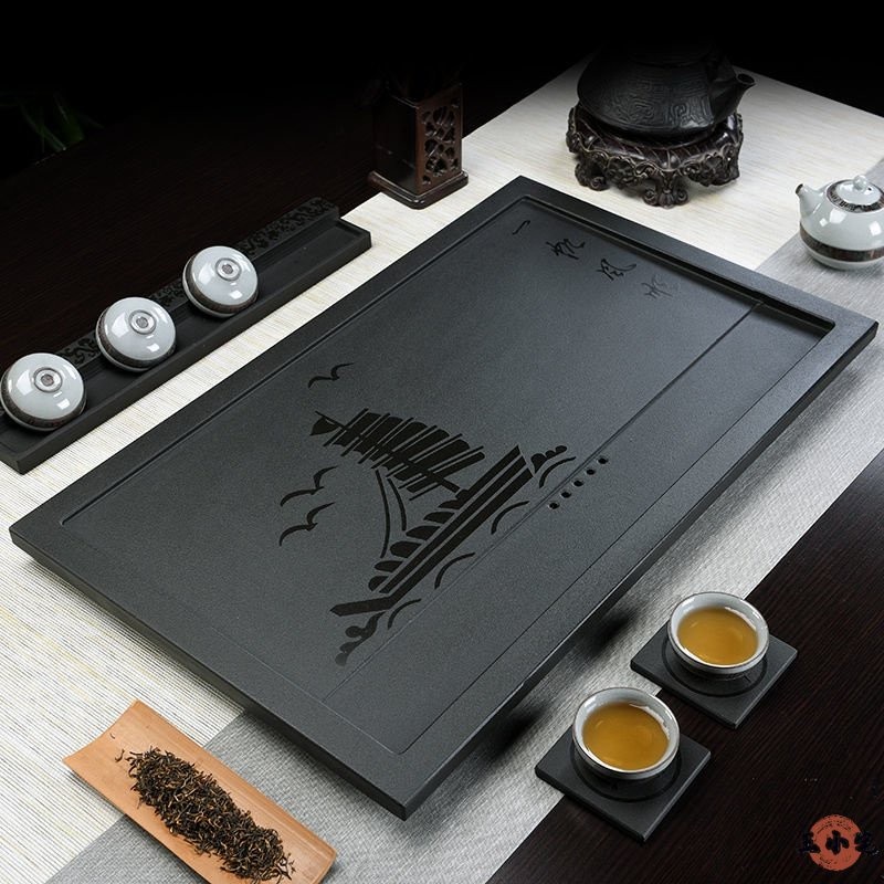 安安家具烏金石茶盤 整塊天然烏金石茶臺 簡約家用長方形大小號石頭黑金石茶臺茶具茶盤 客廳功夫茶臺 茶具托盤定制XH