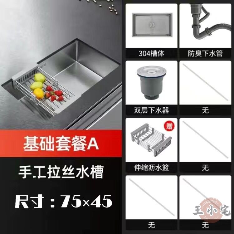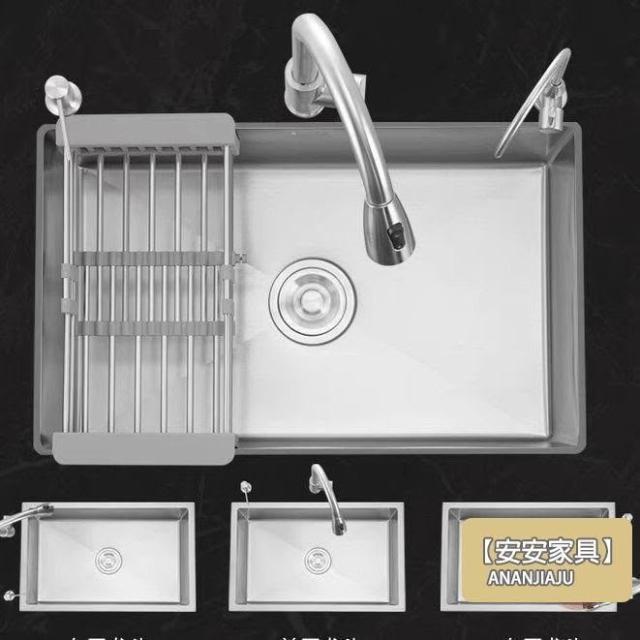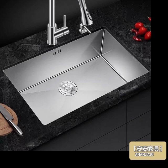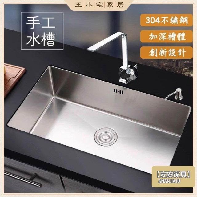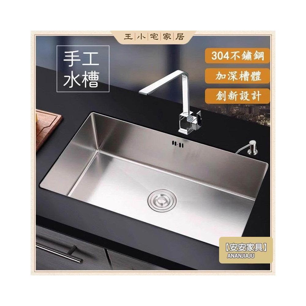 安安家具不鏽鋼水槽 304不銹鋼拉絲臺下盆 嵌入式吧臺 家用加厚手工大單槽 洗碗槽 廚房水槽 洗手槽 水槽瀝水架XH
