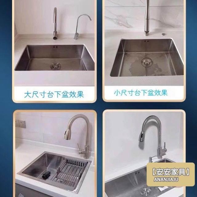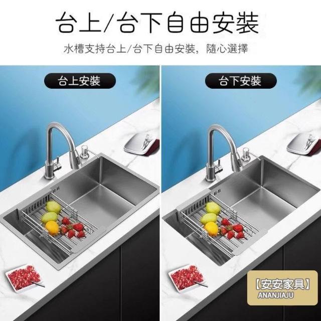 安安家具不鏽鋼水槽 304不銹鋼拉絲臺下盆 嵌入式吧臺 家用加厚手工大單槽 洗碗槽 廚房水槽 洗手槽 水槽瀝水架XH