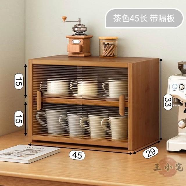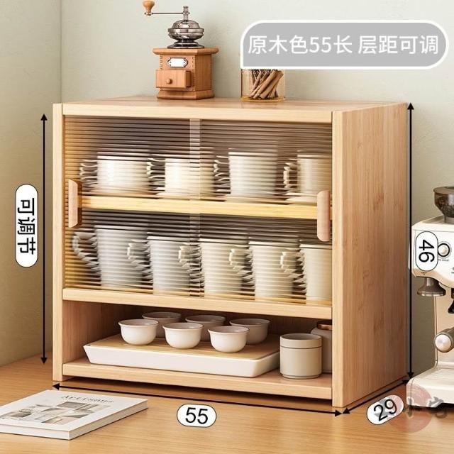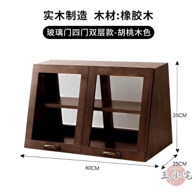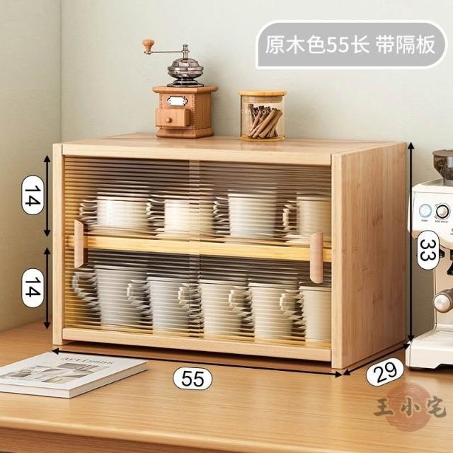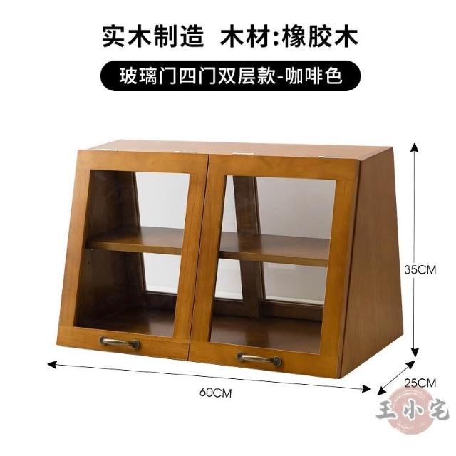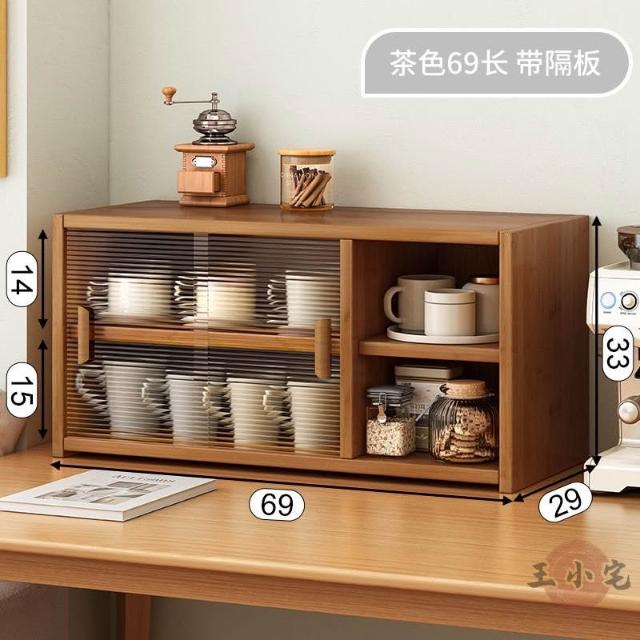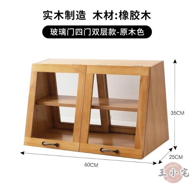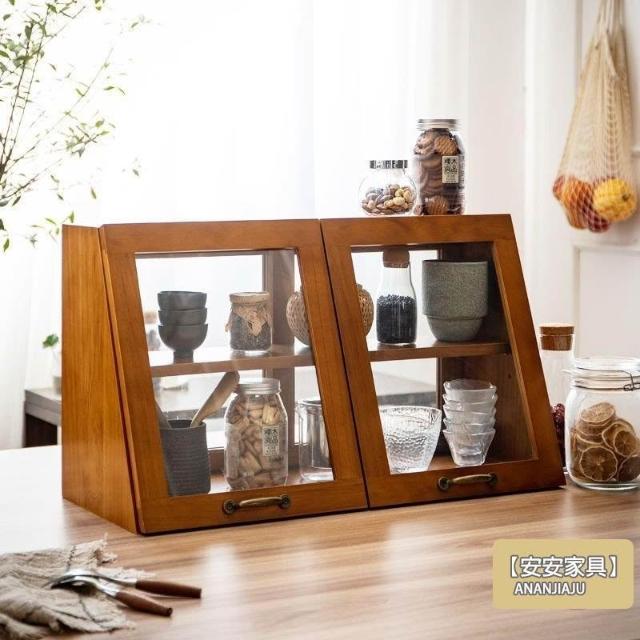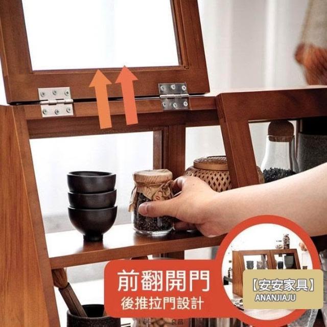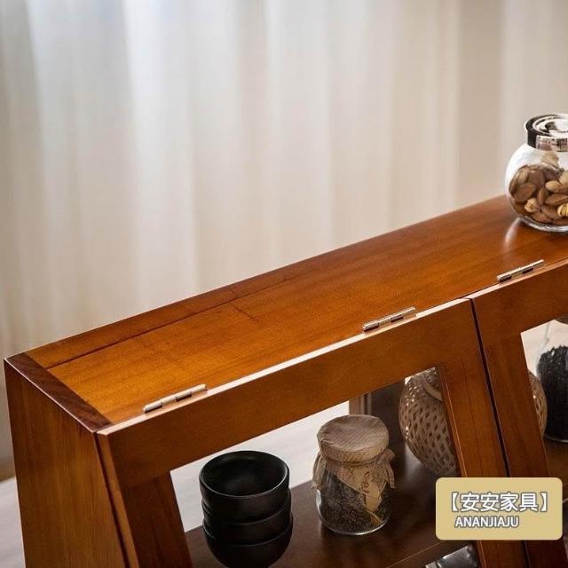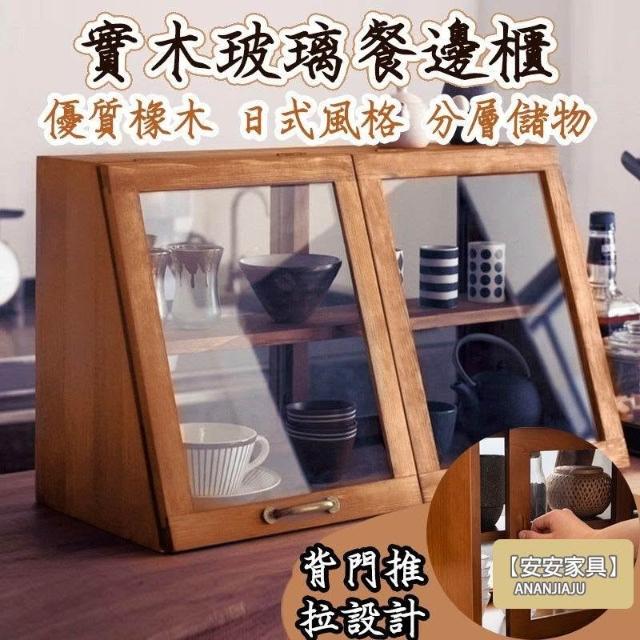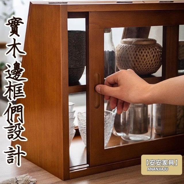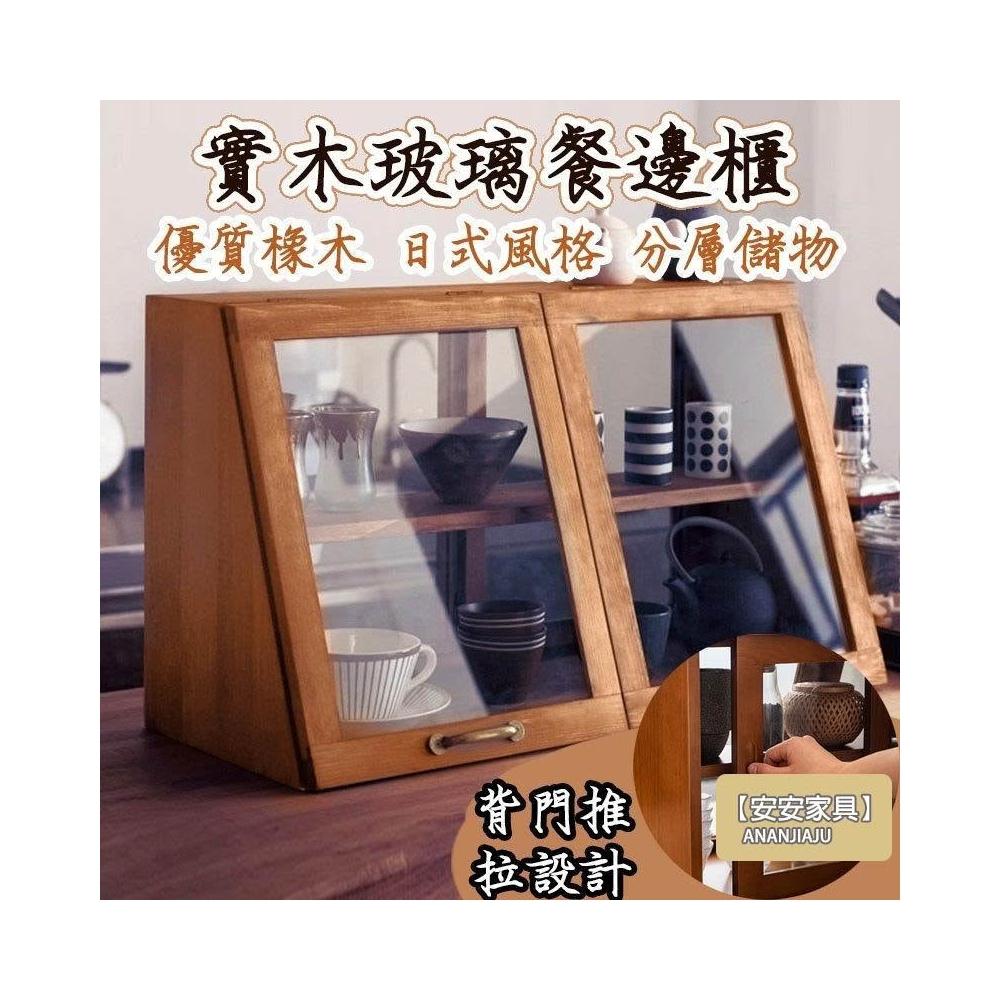 安安家具日式實木餐邊玻璃櫃 桌面收納櫃 廚房置物櫃 檯面櫃子 水杯櫃 碗筷櫃 酒櫃 玻璃碗櫃 置物架咖啡ZH524