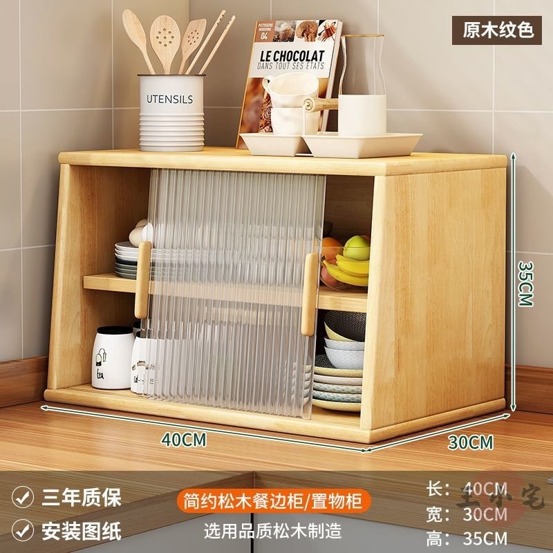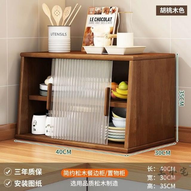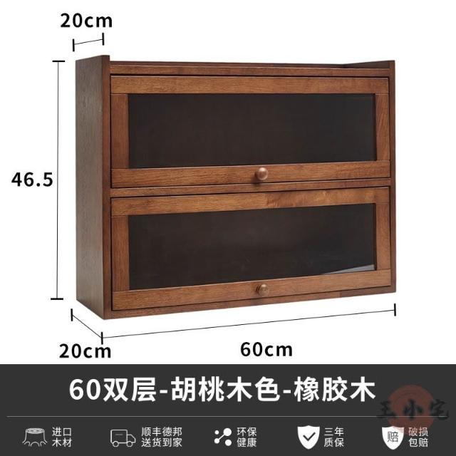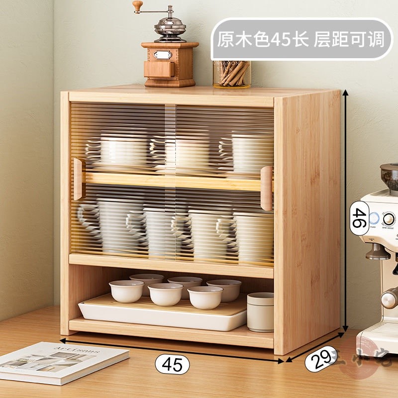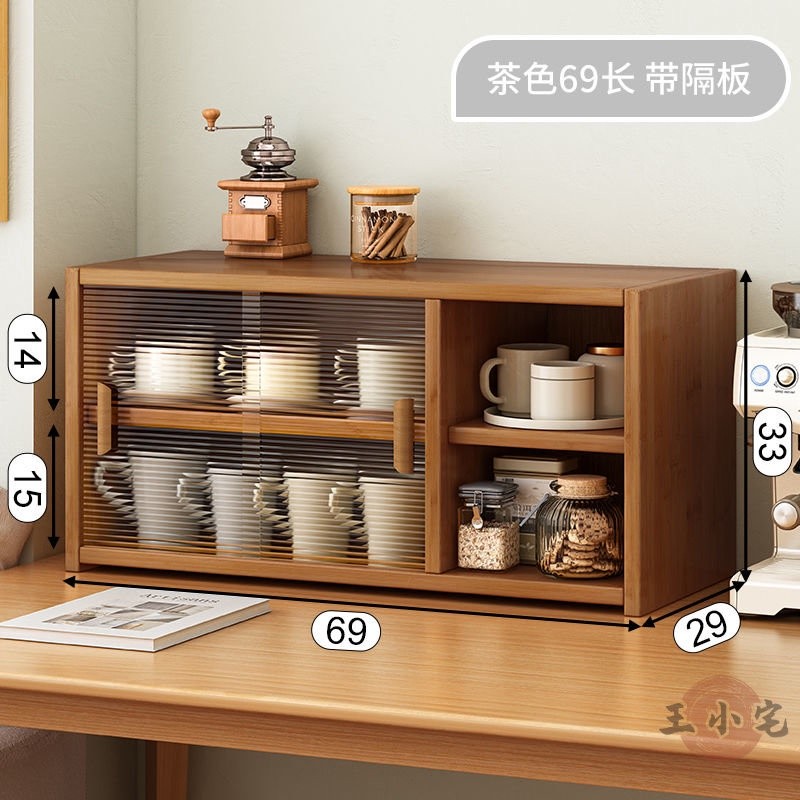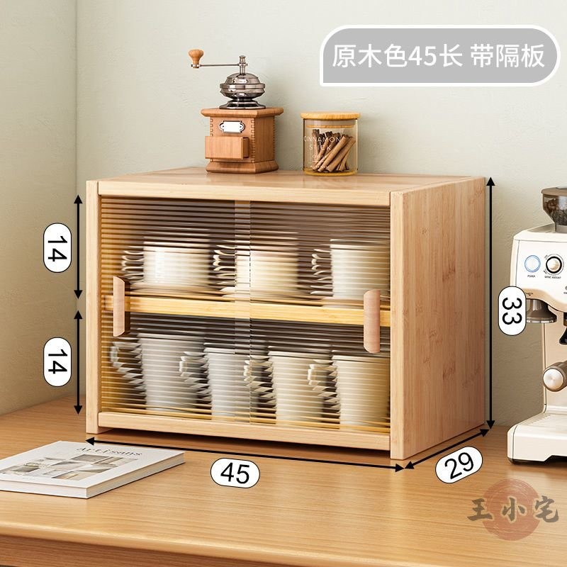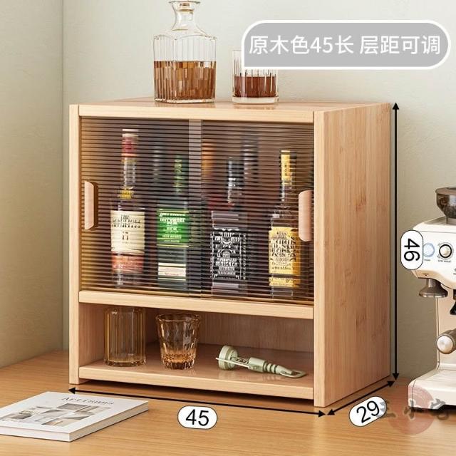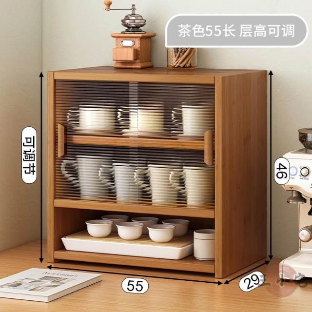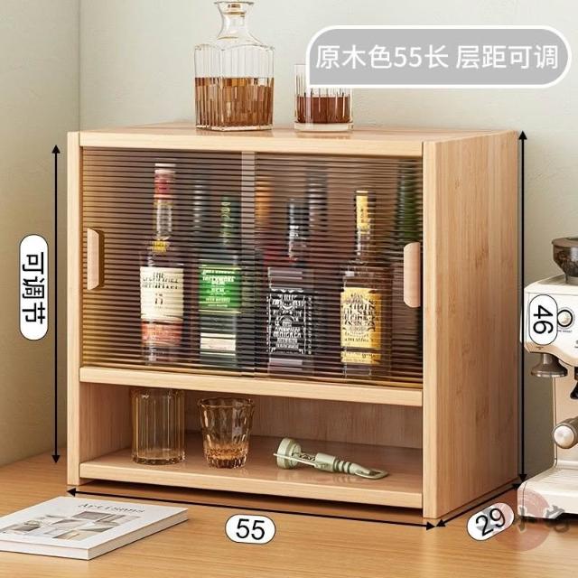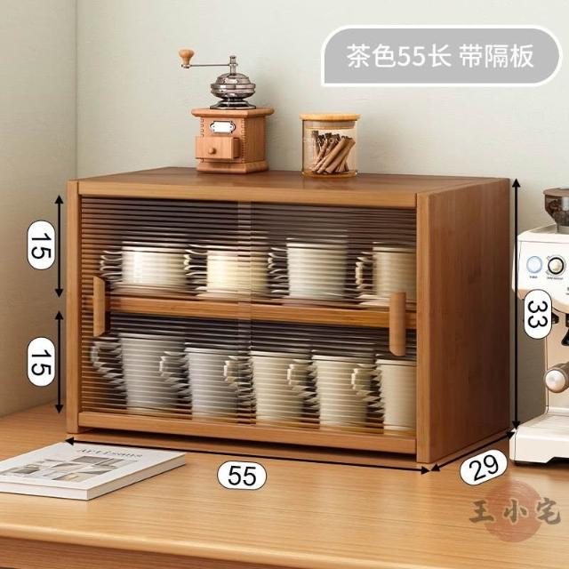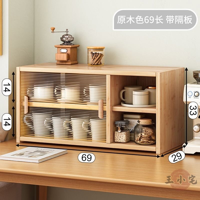 安安家具日式實木餐邊玻璃櫃 桌面收納櫃 廚房置物櫃 檯面櫃子 水杯櫃 碗筷櫃 酒櫃 玻璃碗櫃 置物架咖啡ZH524