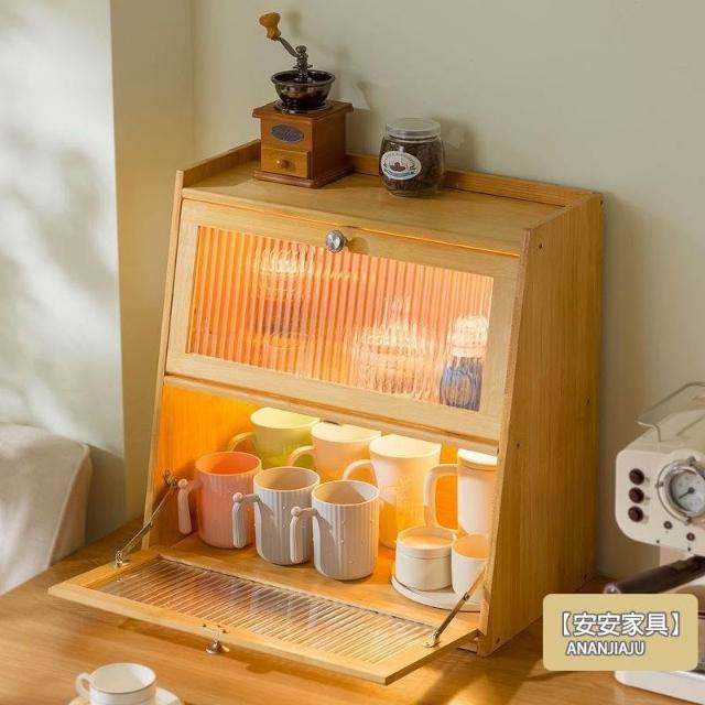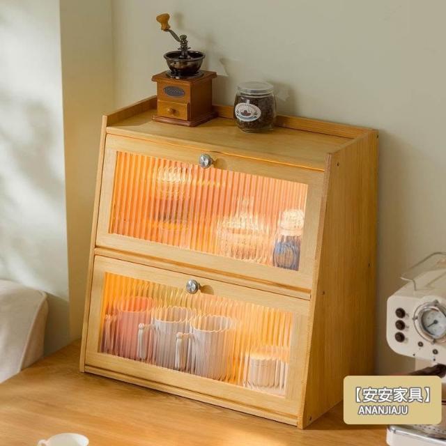 安安家具楠竹水杯櫃 復古水杯櫃 餐邊櫃 酒櫃展示櫃 碗盤杯子收納櫃 玻璃櫃 櫥櫃帶拉門 防塵收納櫃 咖啡玻璃杯架ZH