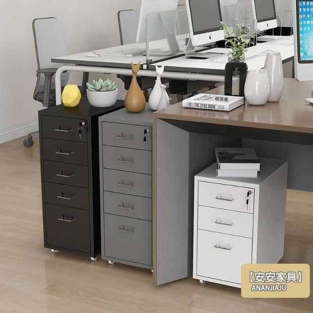 安安家具文件櫃 辦公室小柜 員工櫃 辦公櫃 金屬帶鎖抽屜櫃 移動收納櫃 帶輪桌下矮櫃 儲物櫃1ZH16
