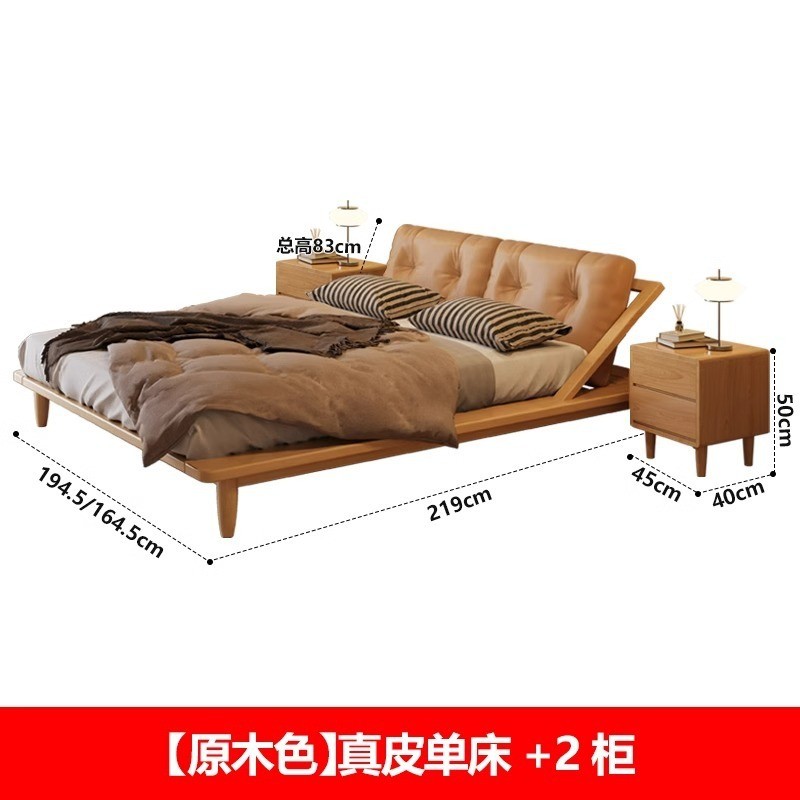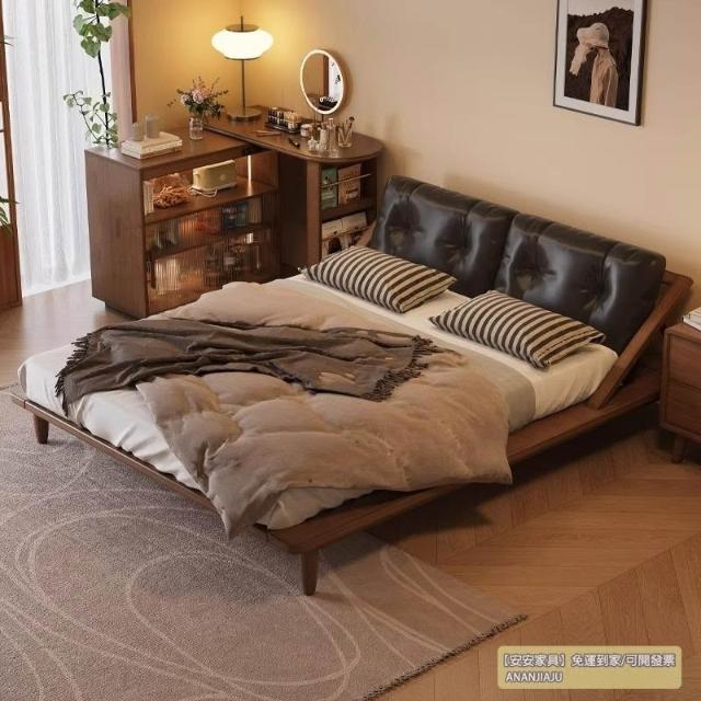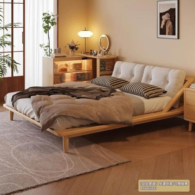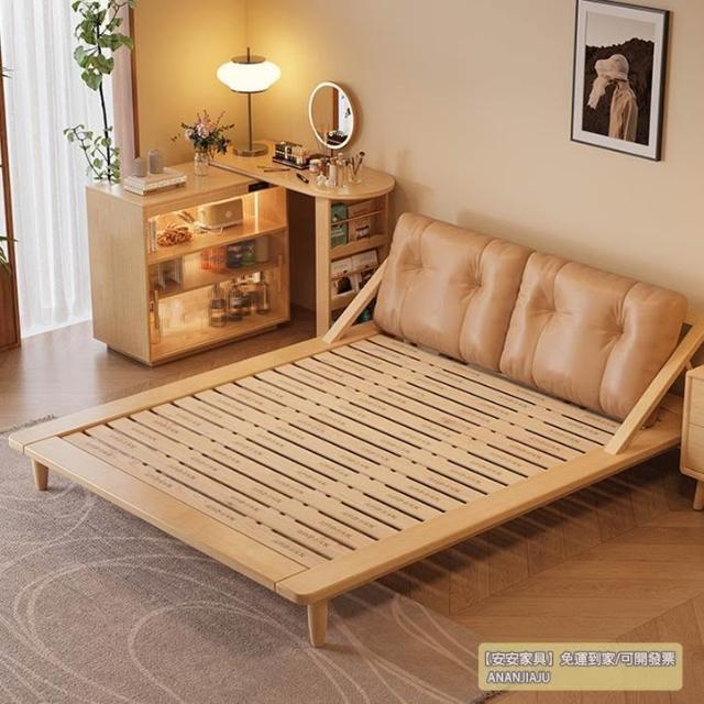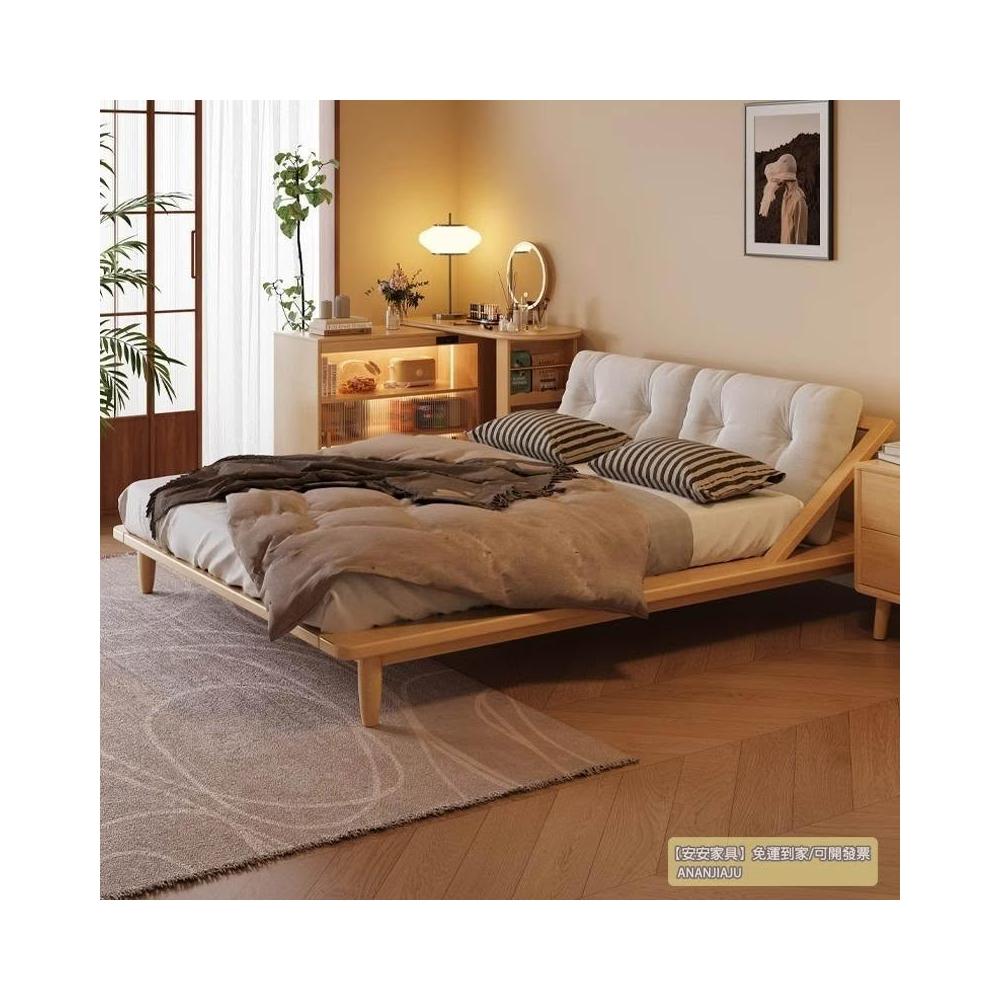 安安家具/包安裝/2026年新款床/實木床/雙人床架/日式床架/靜音排骨架/真皮靠背CJ-YM-059-CF