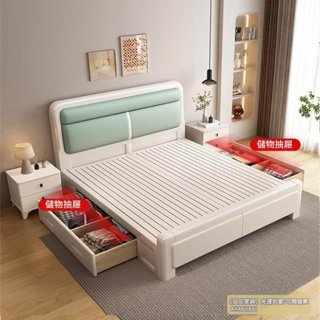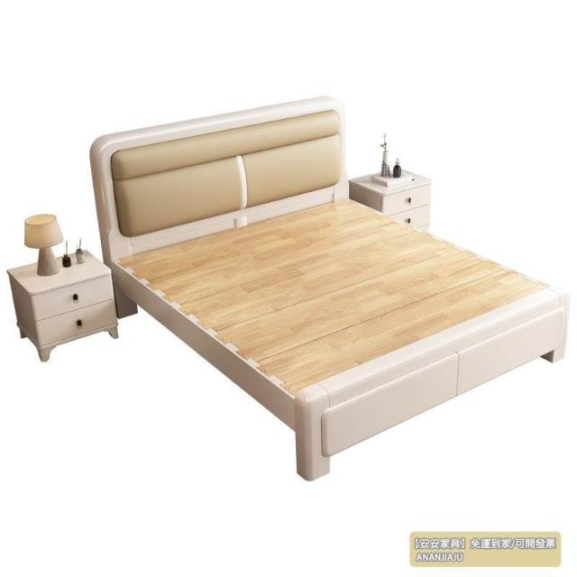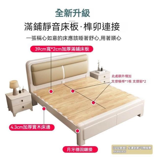 安安家具/包安裝/2026年新款床/榫卯實木床白色簡約現代奶油風雙人床主臥180CM北歐軟靠工廠直銷C-SM-0