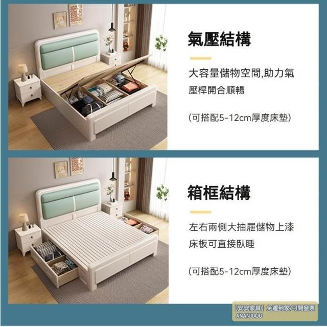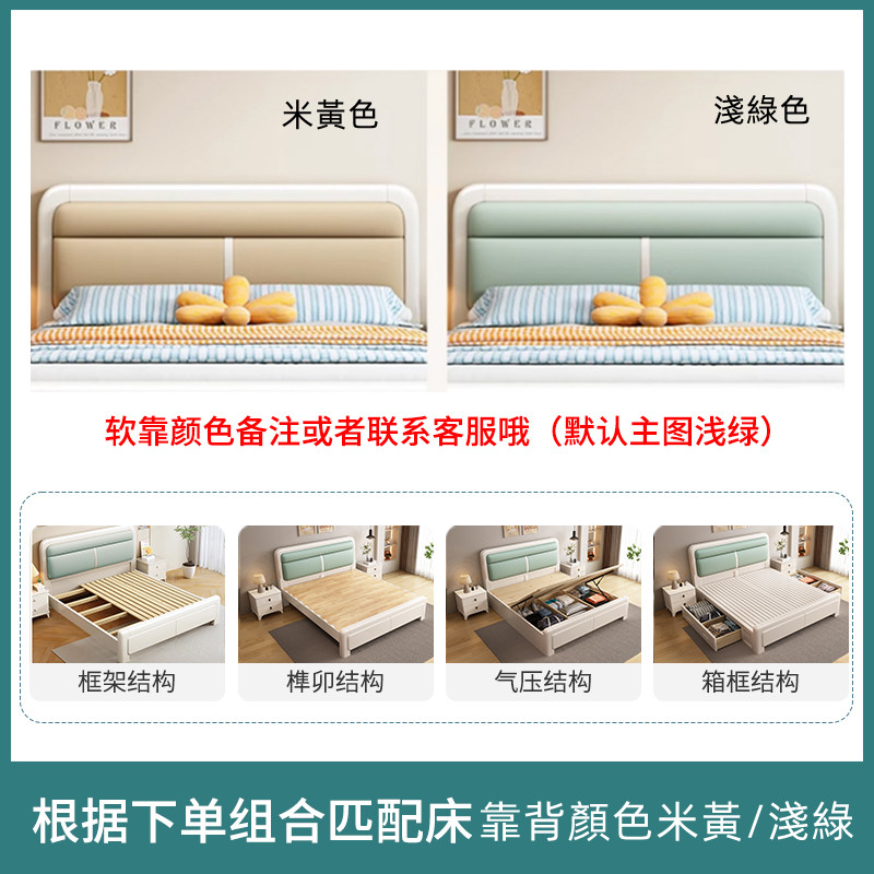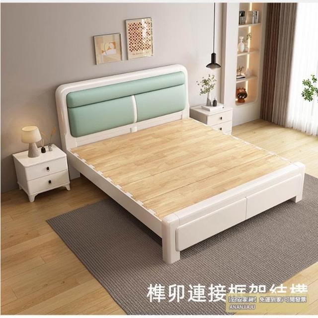 安安家具/包安裝/2026年新款床/榫卯實木床白色簡約現代奶油風雙人床主臥180CM北歐軟靠工廠直銷C-SM-0
