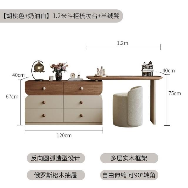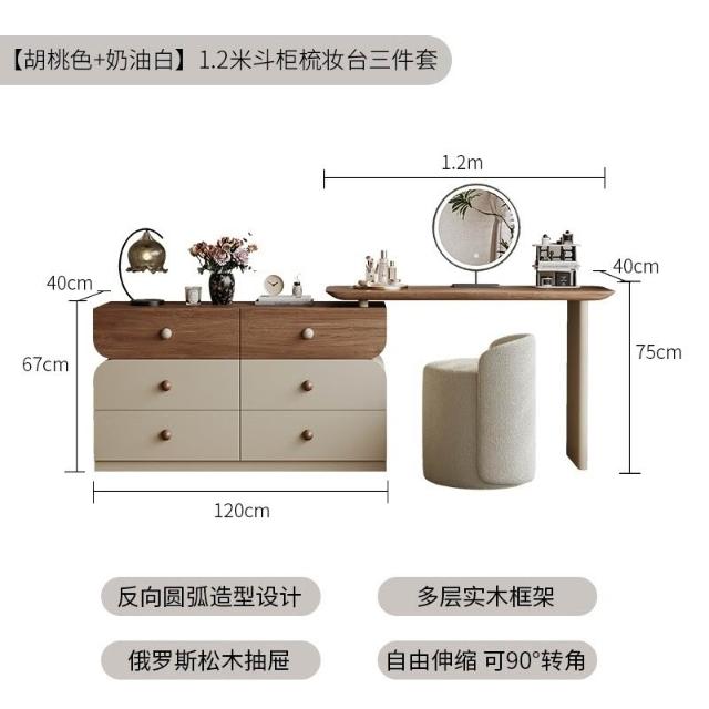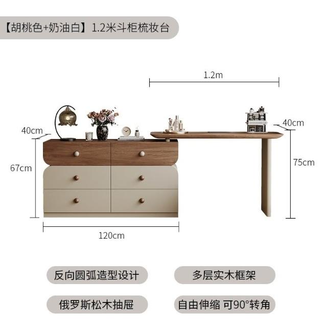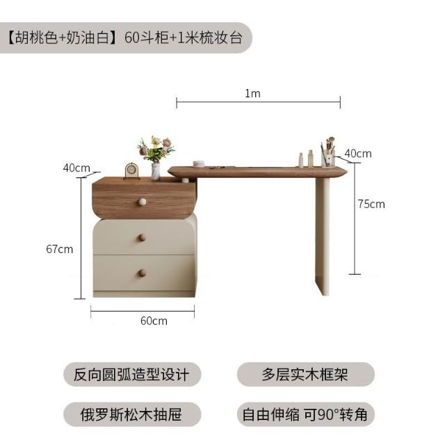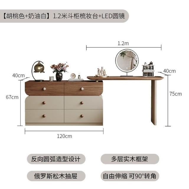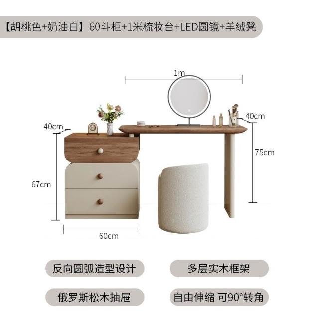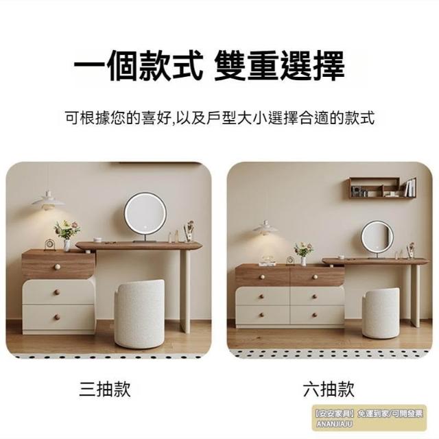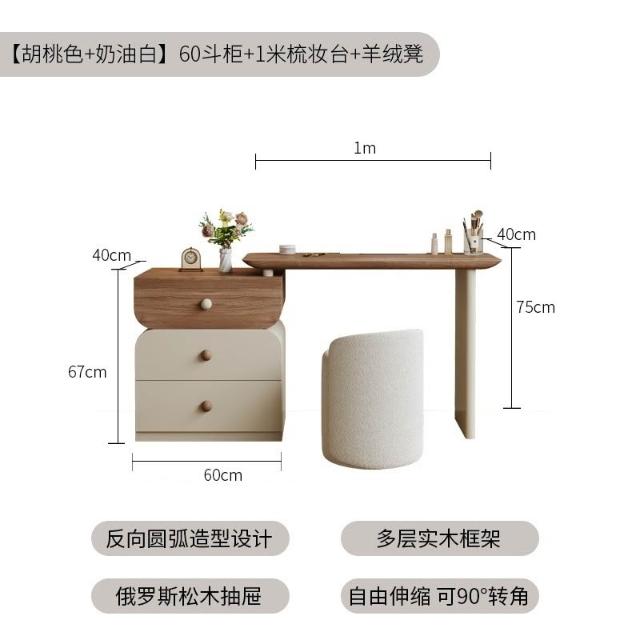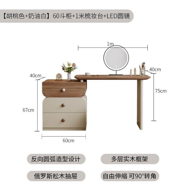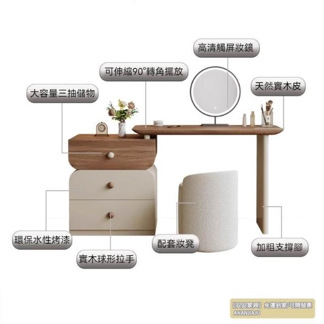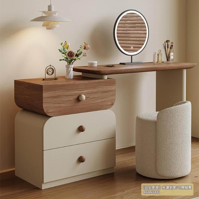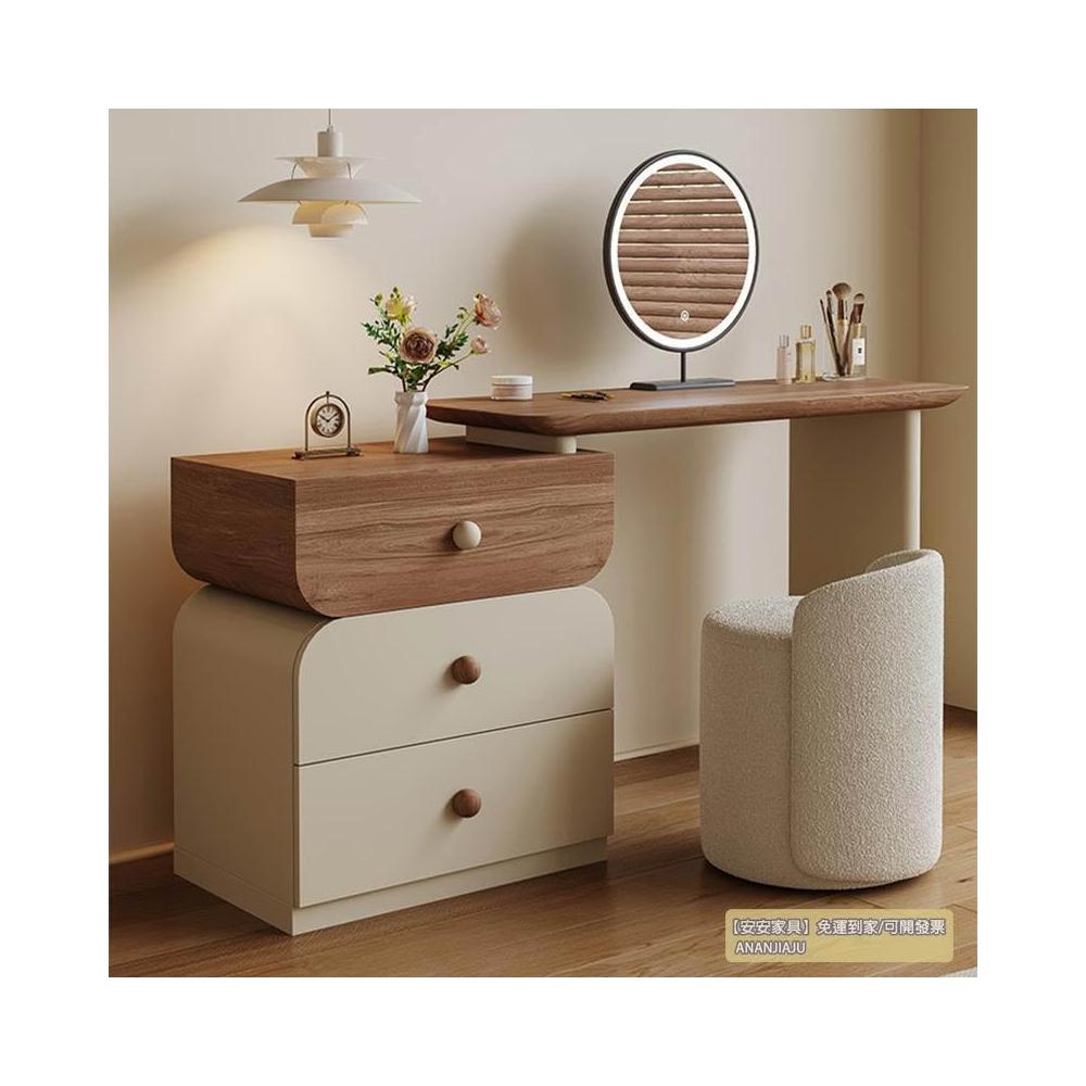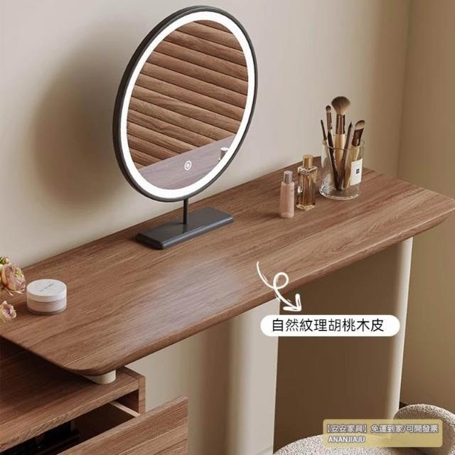 安安家具/包安裝/2026年新款包組裝★】梳妝臺可伸縮實木梳妝臺/收納櫃化妝桌一體/小戶型化妝臺/ 胡桃木紋檯面