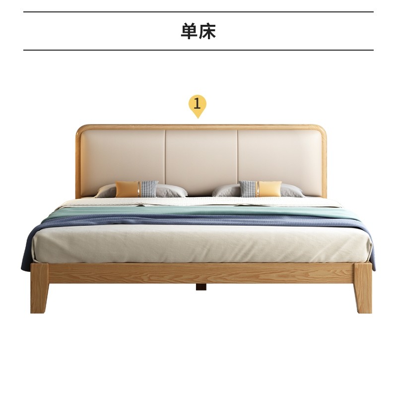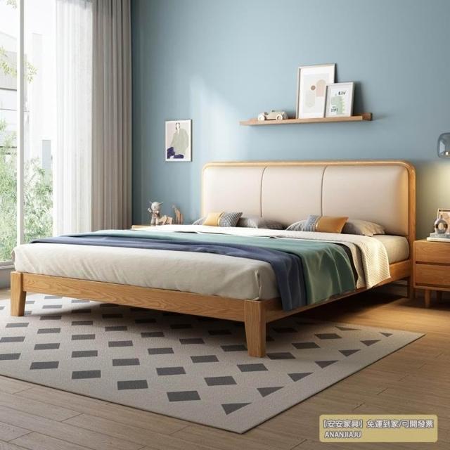 安安家具/包安裝/2026年新款床/北歐實木床白蠟木簡約現代風150CM單人主臥小戶型180CM軟靠雙人床C-S