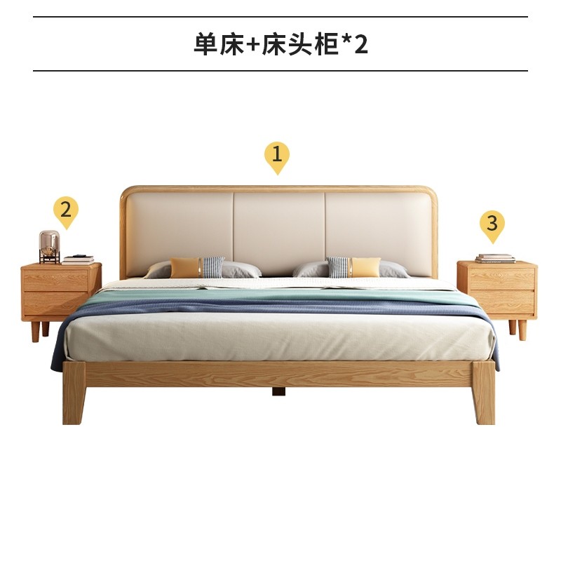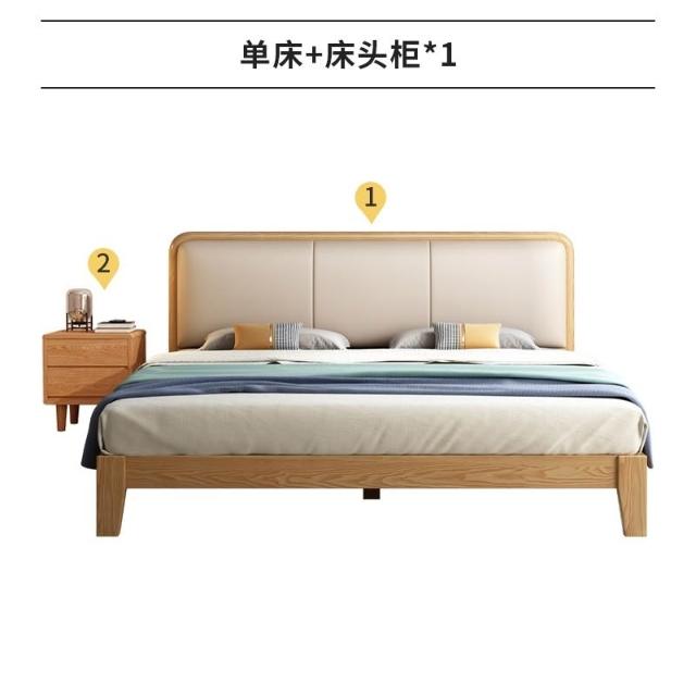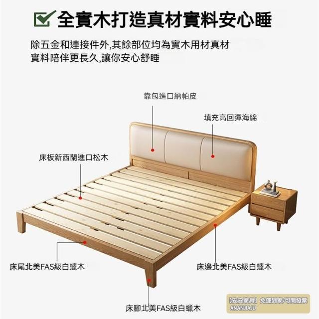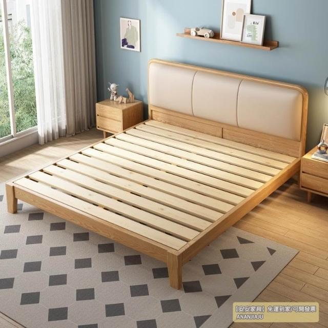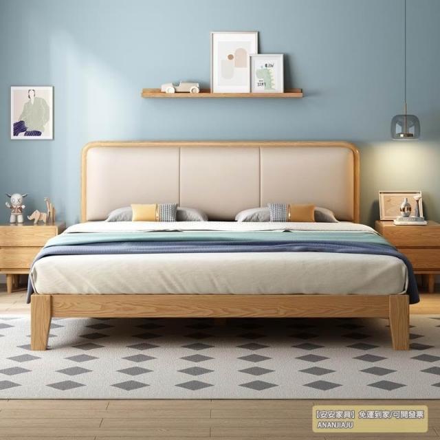 安安家具/包安裝/2026年新款床/北歐實木床白蠟木簡約現代風150CM單人主臥小戶型180CM軟靠雙人床C-S