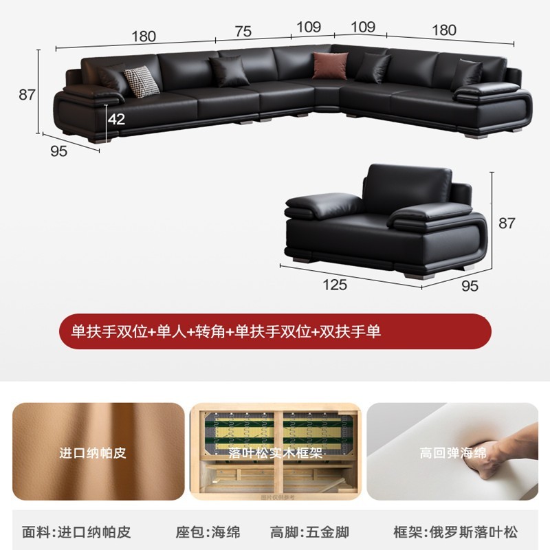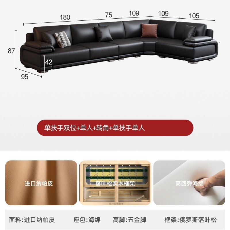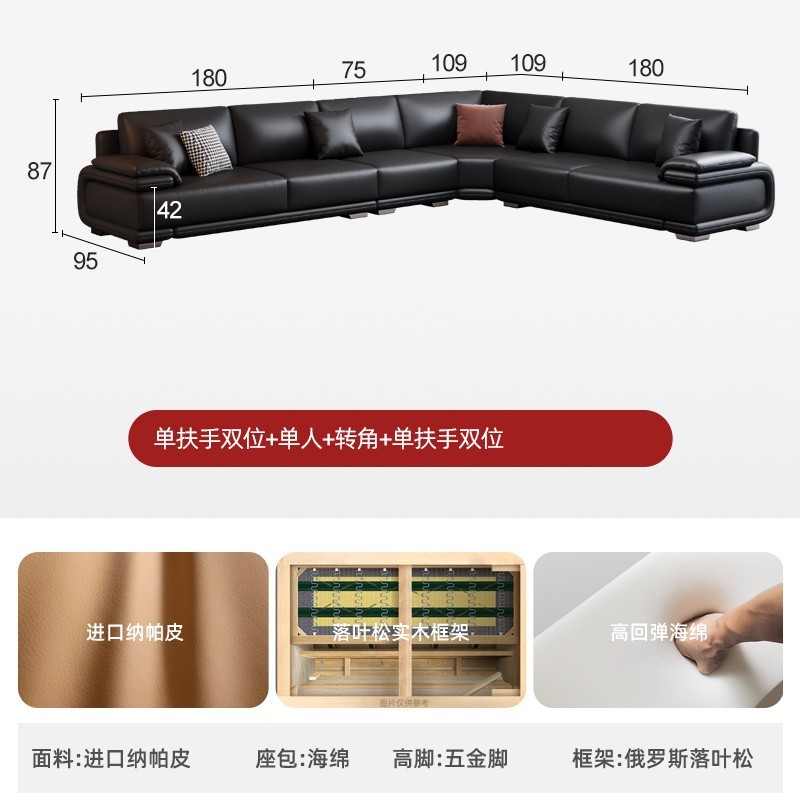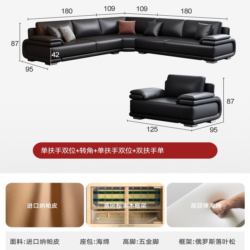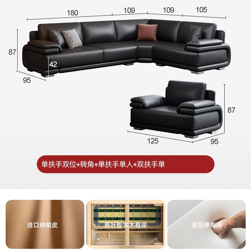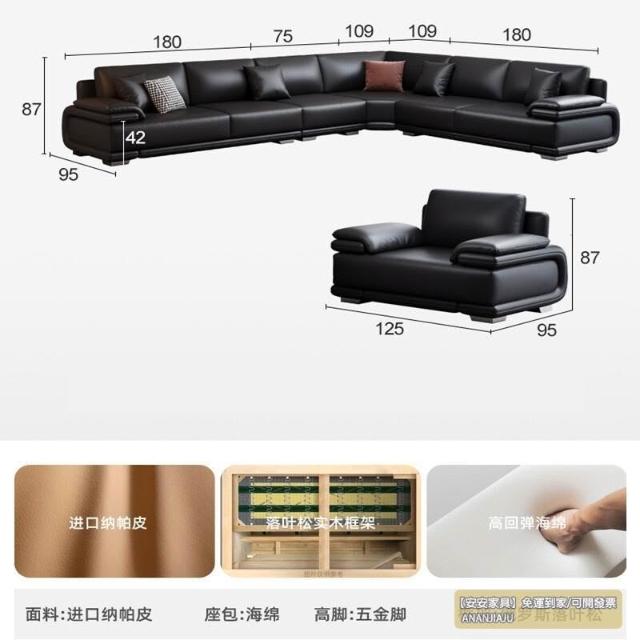 安安家具/包安裝/2026年新款沙發/真皮沙發/頭層牛皮現代簡約客廳轉角大小戶型極簡皮質沙發組合SF-P-025