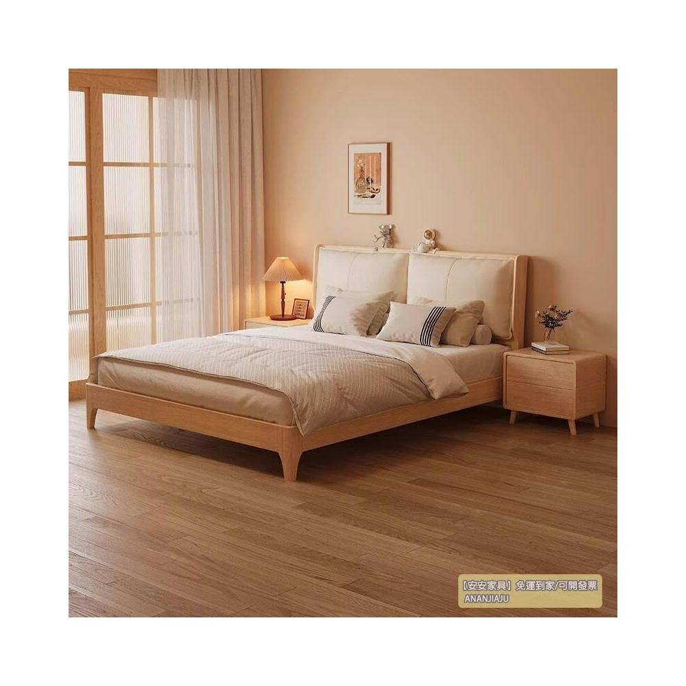 安安家具/包安裝/2026年新款床/實木床/雙人床架/北歐軟包床/加厚橡膠木框架CJ-YM-060-CF