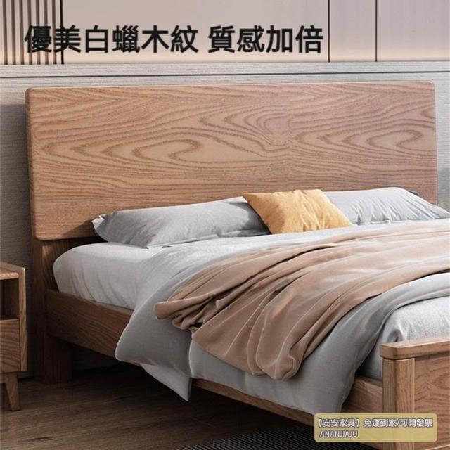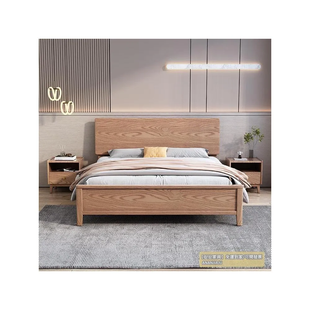 安安家具/包安裝/2026年新款床/北歐白蠟木180雙人床150簡約輕奢實木床小戶型實木床架C-SM-058-F