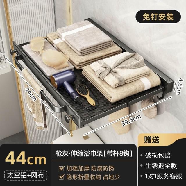 木舍 折疊毛巾架吸盤伸縮浴巾衛生間置物架浴室放衣服隱形免打孔收納架 1 0
