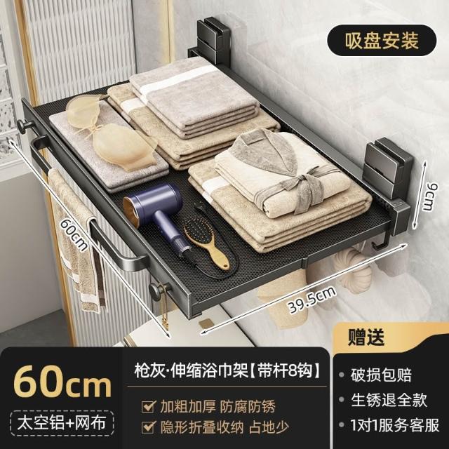 木舍 折疊毛巾架吸盤伸縮浴巾衛生間置物架浴室放衣服隱形免打孔收納架 1 0