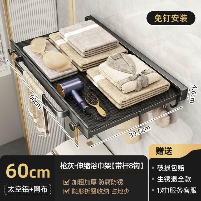 木舍 折疊毛巾架吸盤伸縮浴巾衛生間置物架浴室放衣服隱形免打孔收納架 27