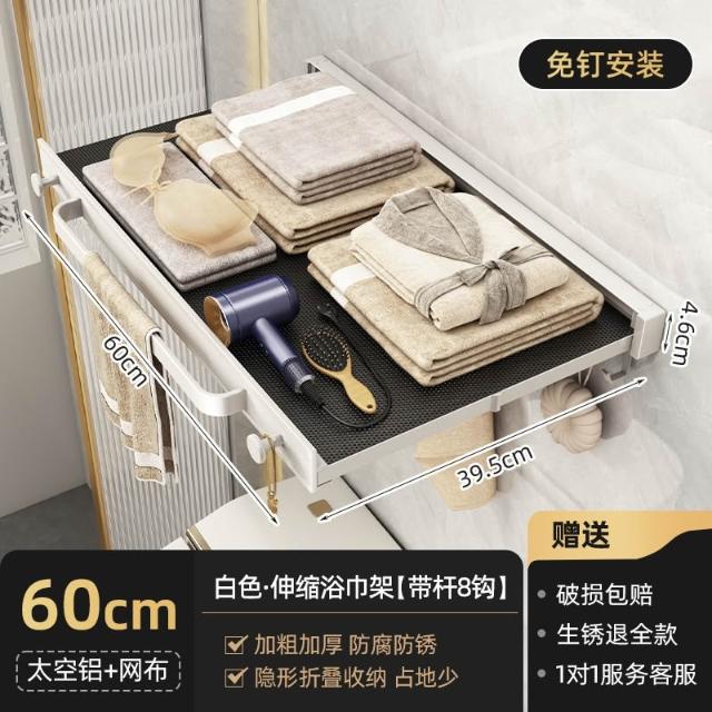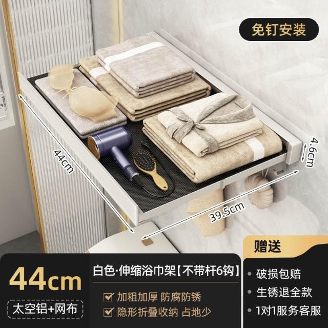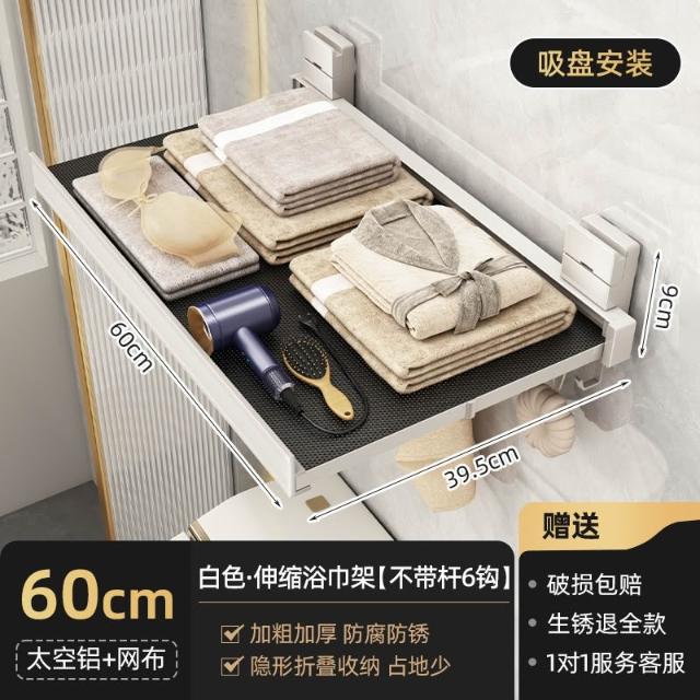 木舍 折疊毛巾架吸盤伸縮浴巾衛生間置物架浴室放衣服隱形免打孔收納架 27