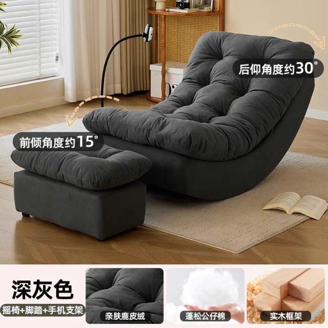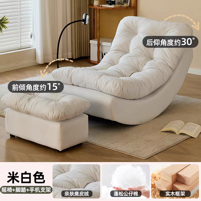木舍 懶人沙發可躺可睡單人臥室陽臺小沙發休閑懶人躺椅客廳月亮搖搖椅 f6f
