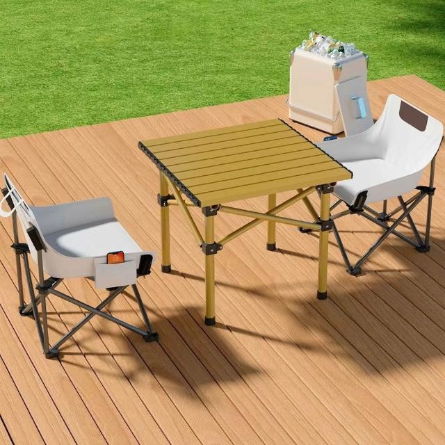 木舍 加厚款戶外桌椅套裝野餐露營野外炊具三件套車載擺攤蛋卷桌子折疊