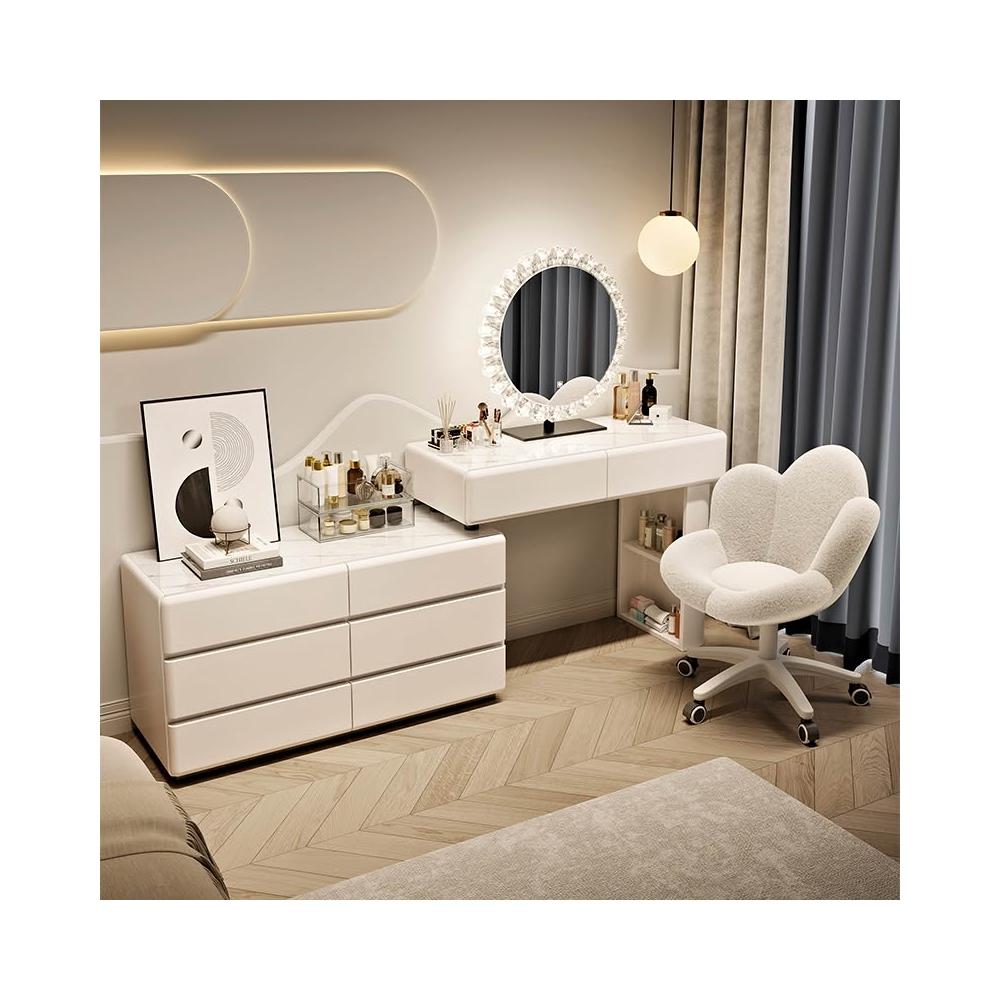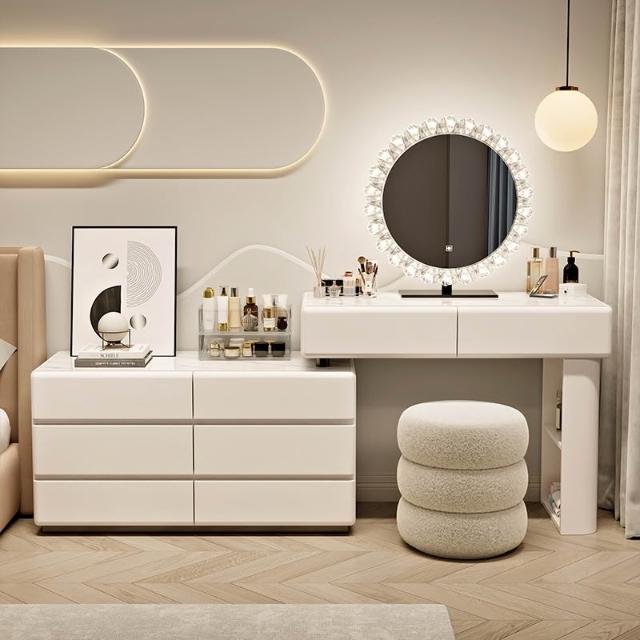 木舍 實木奶油風梳妝臺鬥一體臥室5新簡約化妝桌輕奢高級感 618