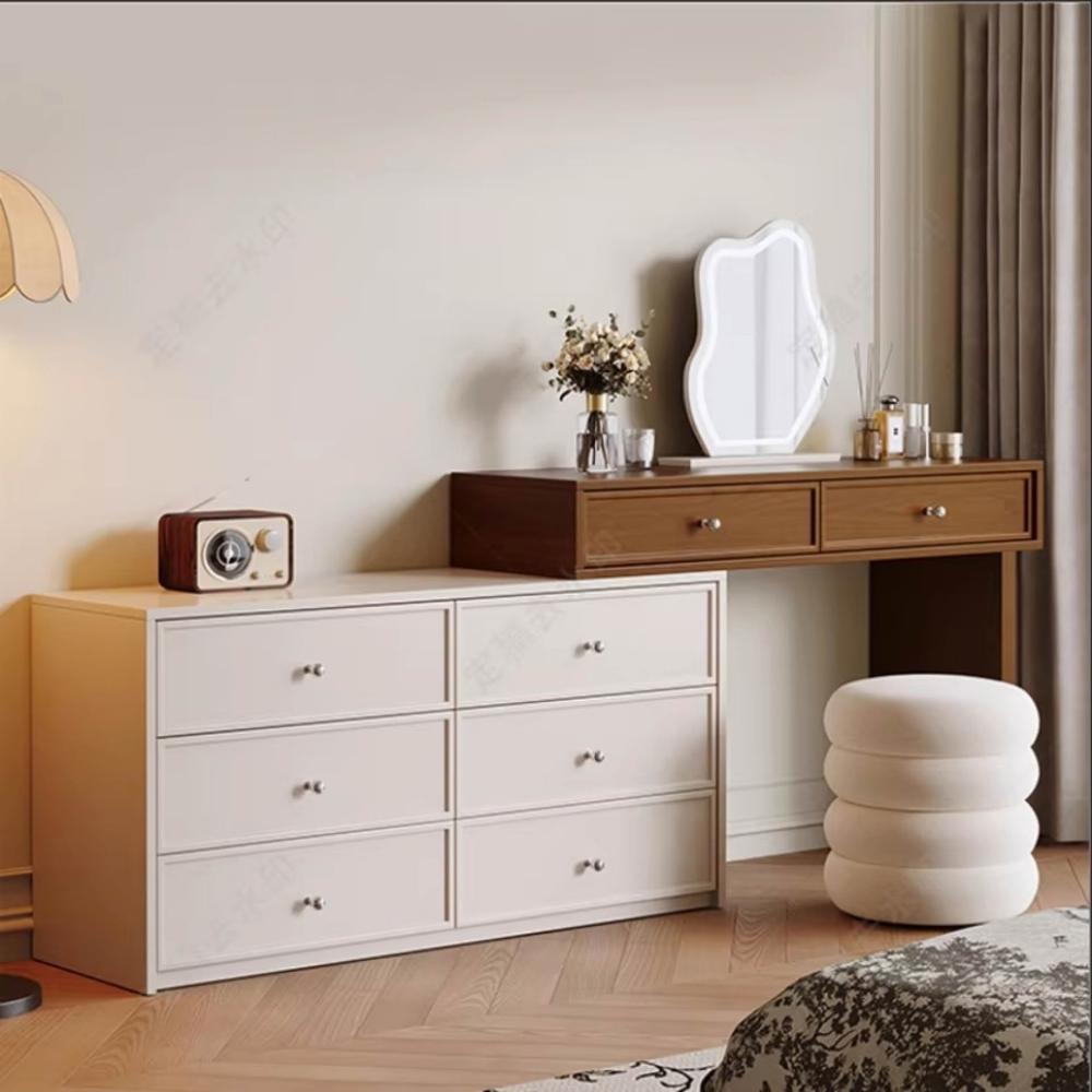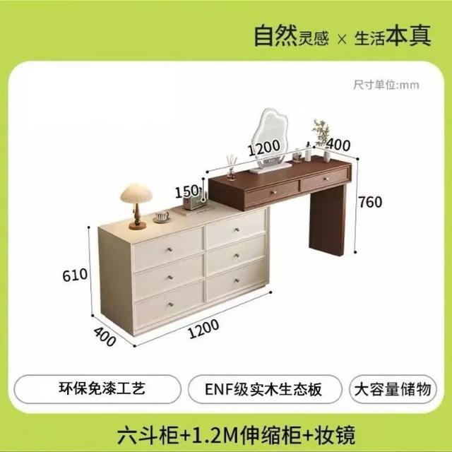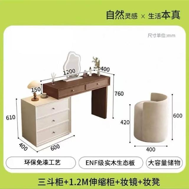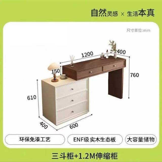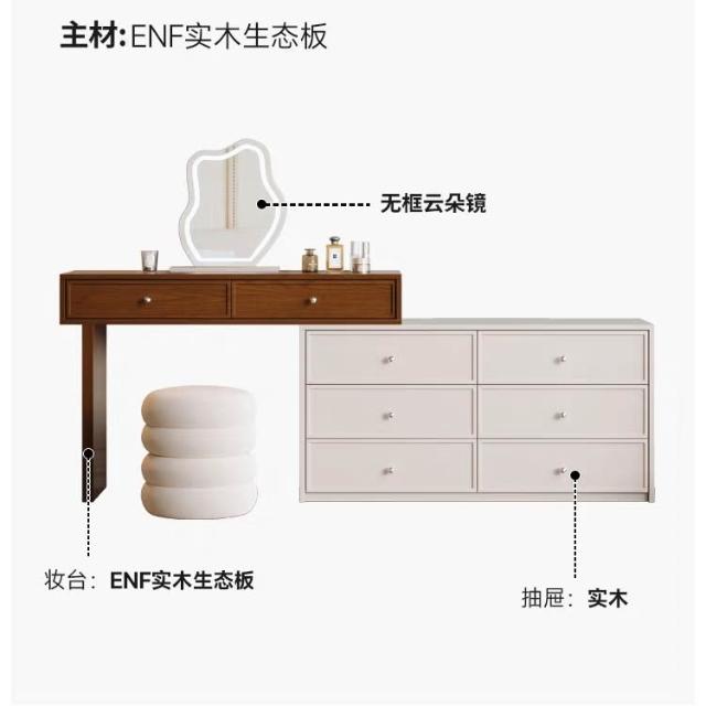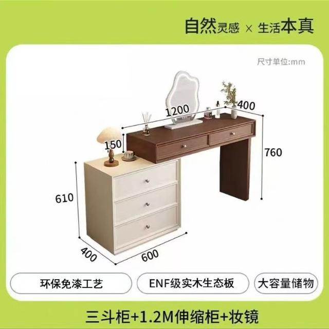 木舍 2026新款臥室實木胡桃色梳妝臺鬥櫃一體化妝桌簡約現代北歐奶油風