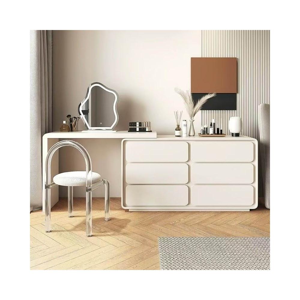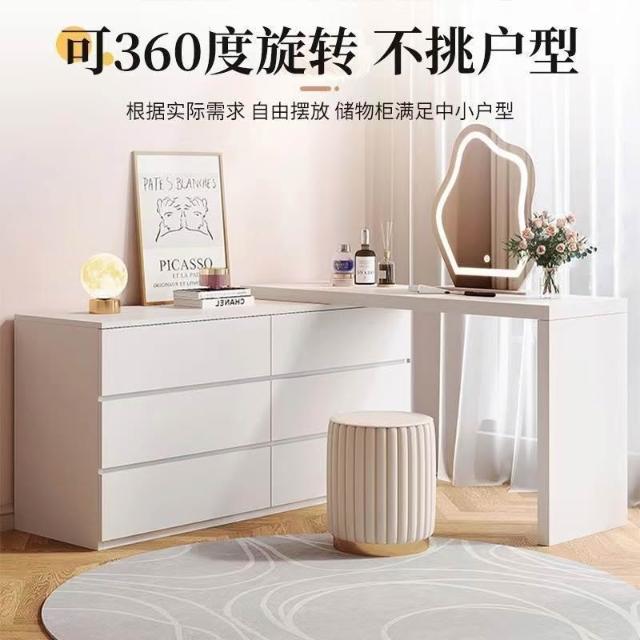 木舍 實木梳妝臺奶油風可伸縮現代簡約家用臥室收納櫃一體臥室化妝書桌 7 3