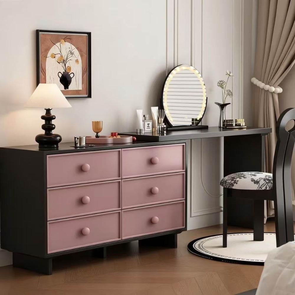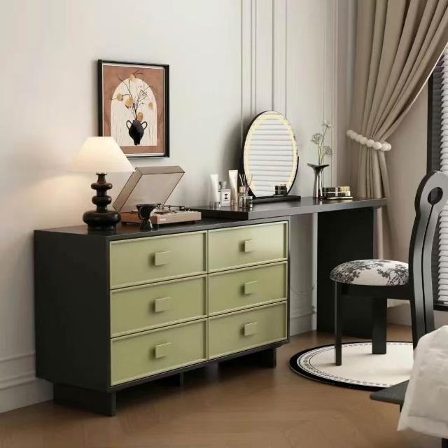 木舍 實木烤中古風多巴胺梳妝臺鬥櫃一體床尾櫃撞色 型復古化妝桌 77