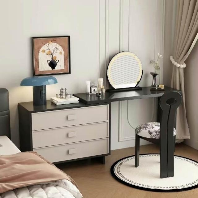 木舍 實木烤中古風多巴胺梳妝臺鬥櫃一體床尾櫃撞色 型復古化妝桌 77