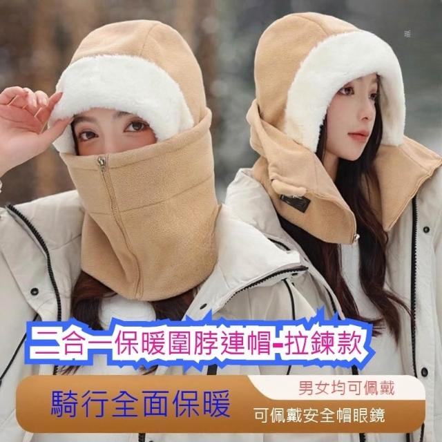 二合一多功能保暖連體式帽子圍脖組 拉鍊款 護耳帽 加絨圍脖