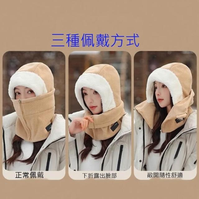 二合一多功能保暖連體式帽子圍脖組 拉鍊款 護耳帽 加絨圍脖