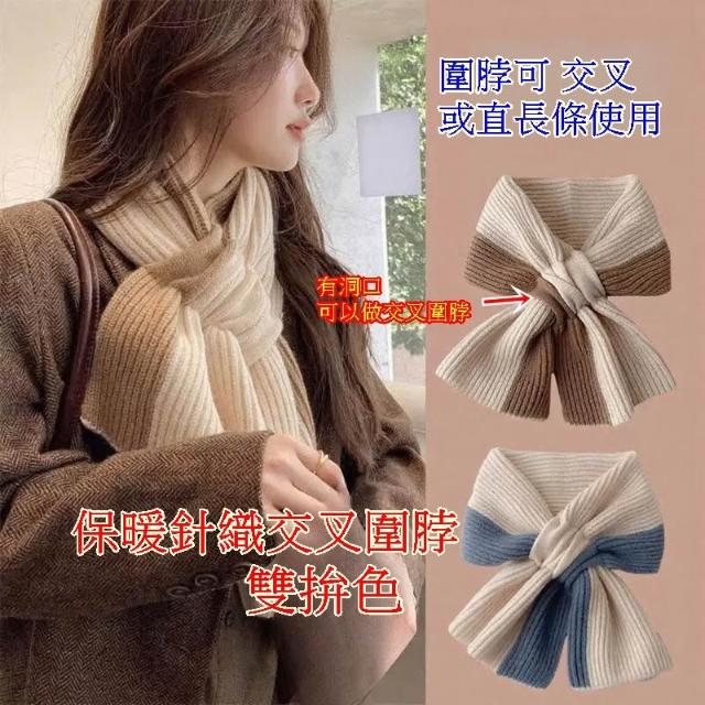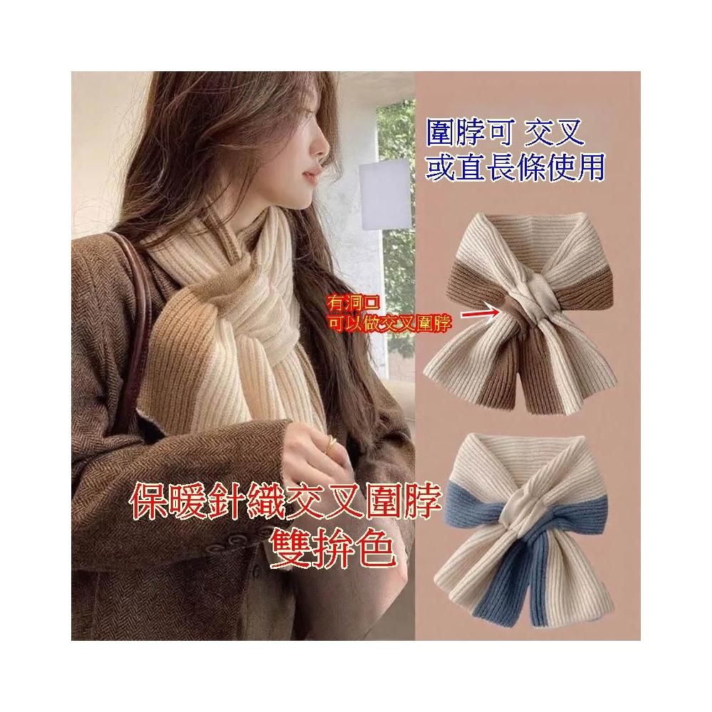 保暖圍巾圍脖 交叉圍脖 長版圍脖 針織圍脖 雙拼色百搭冬天保暖懶人護頸