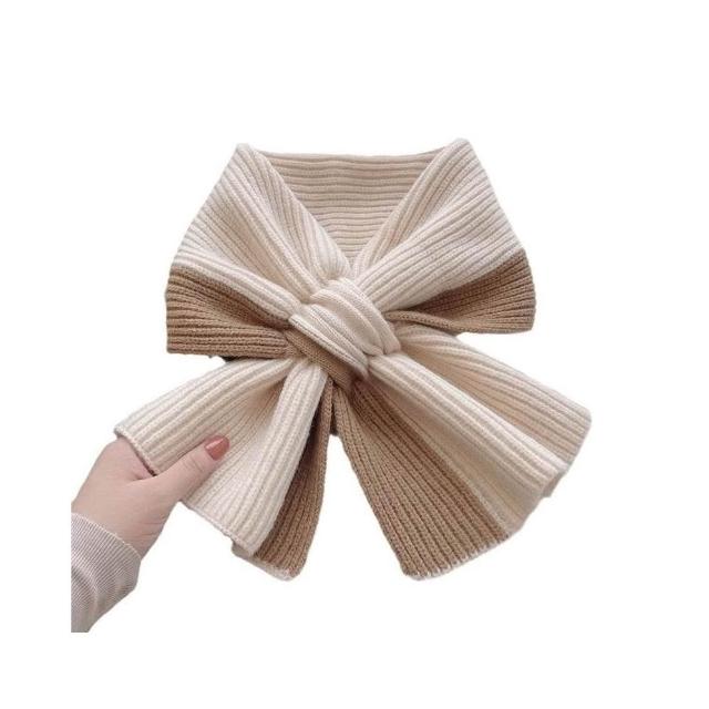 保暖圍巾圍脖 交叉圍脖 長版圍脖 針織圍脖 雙拼色百搭冬天保暖懶人護頸