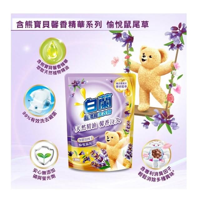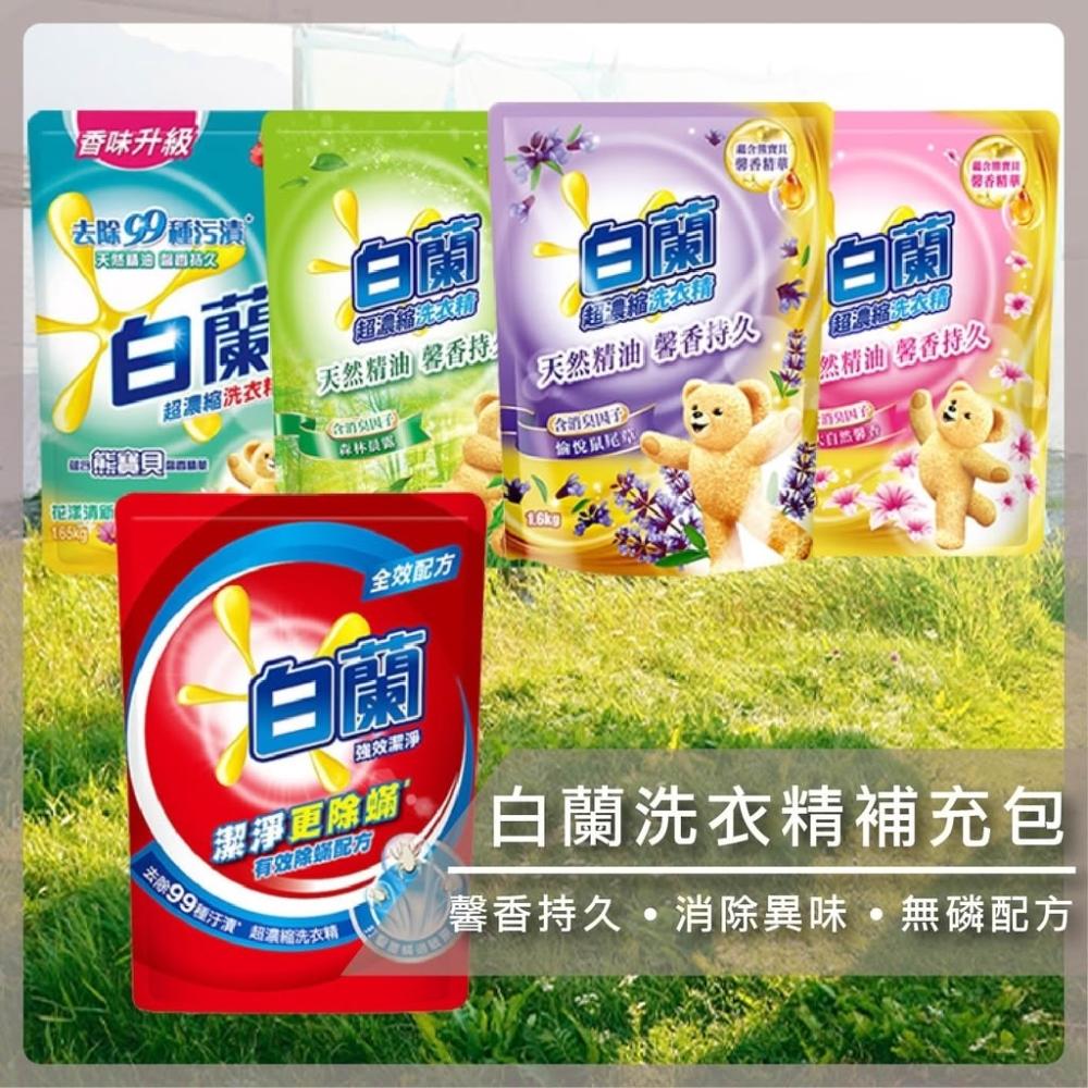 白蘭洗衣精補充包 熊寶貝 馨香精華 花漾清新 森林晨露 愉悅鼠尾草 小蒼蘭 1.6kg【B318-B325】【熊大碗福