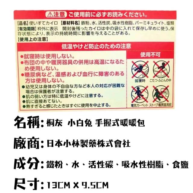小林製藥小林製藥 桐灰小白兔暖暖包 日本進口 輕巧便攜 持續發熱24小時 冬季保暖必備