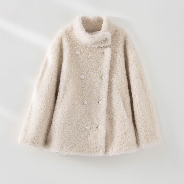 絮語衣社 2025秋冬新款顆粒100%綿羊毛皮毛一體皮草外套立領時尚復古大衣女