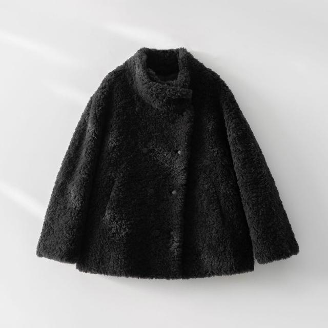 絮語衣社 2025秋冬新款顆粒100%綿羊毛皮毛一體皮草外套立領時尚復古大衣女