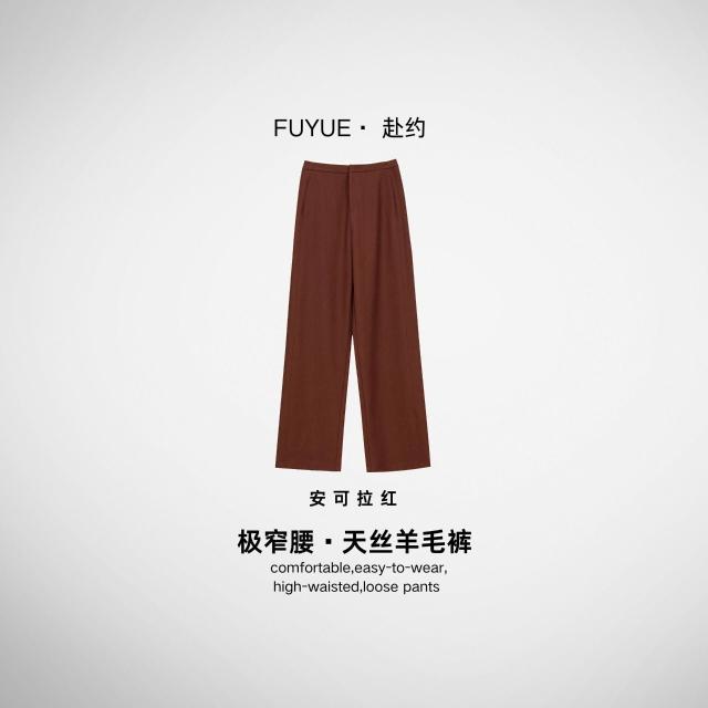 全臺熱銷🔥 天絲羊毛定織定染窄版垂感闊腿褲女2025早秋新款直筒闊腿休閑 (休閒褲/闊腿褲/長褲/女褲)