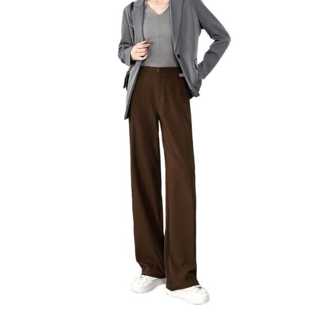 全臺熱銷🔥 天絲羊毛定織定染窄版垂感闊腿褲女2025早秋新款直筒闊腿休閑 (休閒褲/闊腿褲/長褲/女褲)