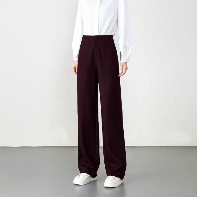 全臺熱銷🔥 天絲羊毛定織定染窄版垂感闊腿褲女2025早秋新款直筒闊腿休閑 (休閒褲/闊腿褲/長褲/女褲)