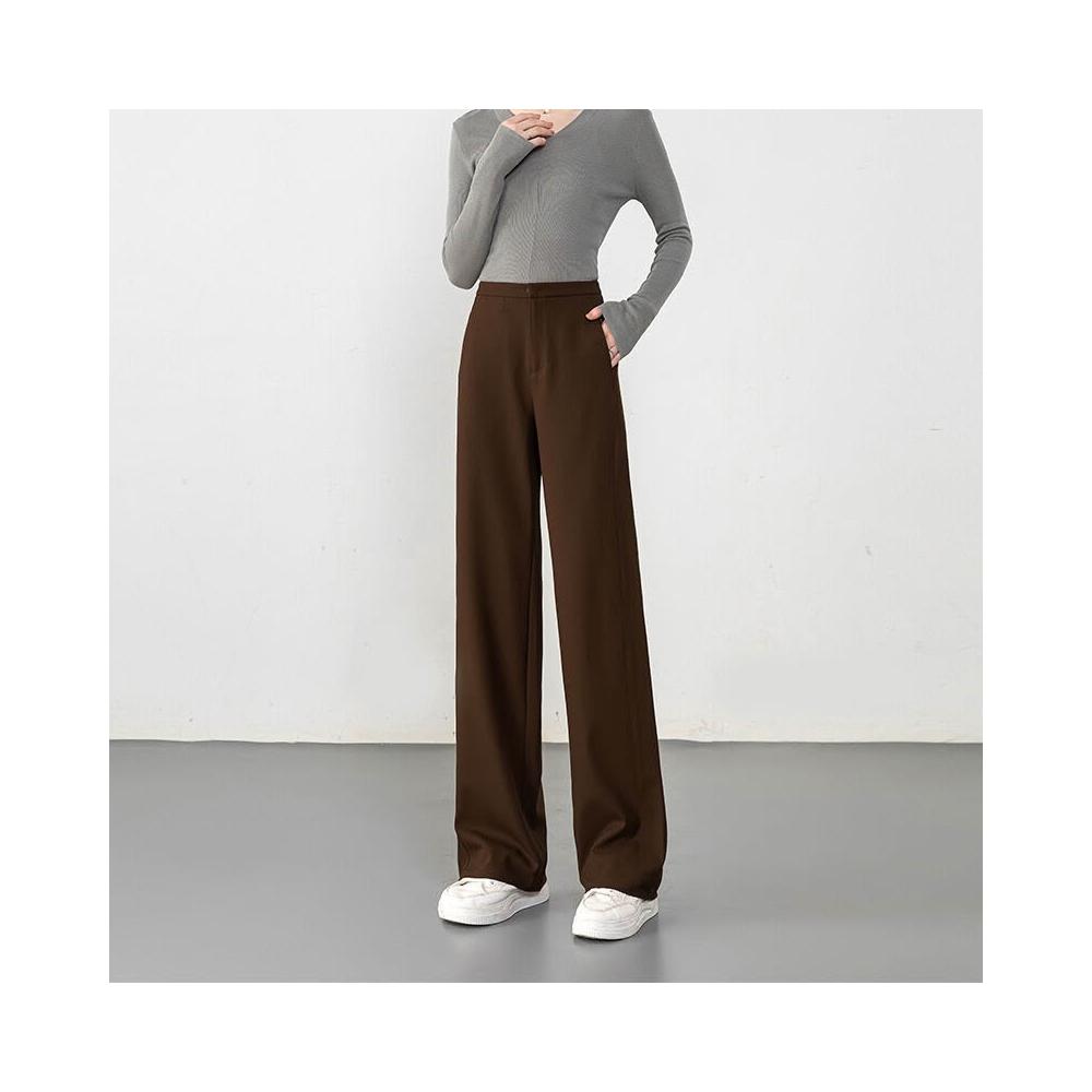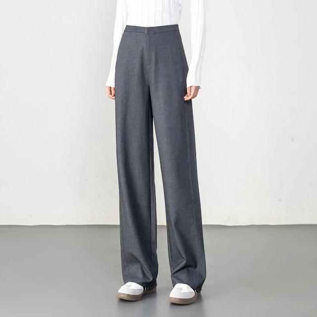 全臺熱銷🔥 天絲羊毛定織定染窄版垂感闊腿褲女2025早秋新款直筒闊腿休閑 (休閒褲/闊腿褲/長褲/女褲)