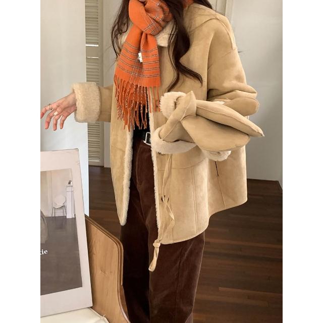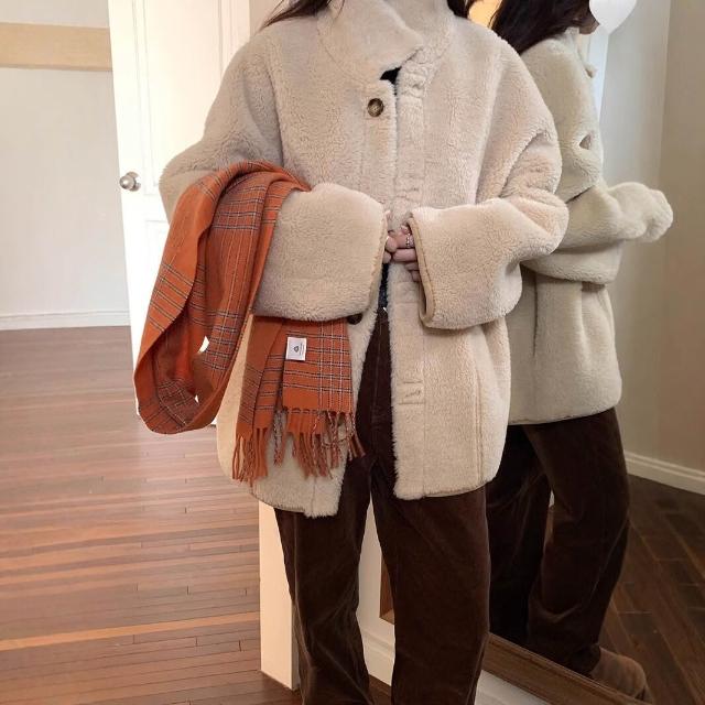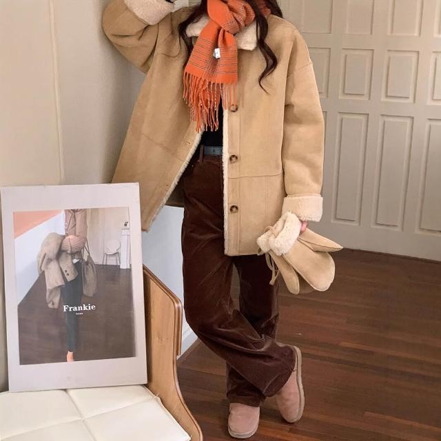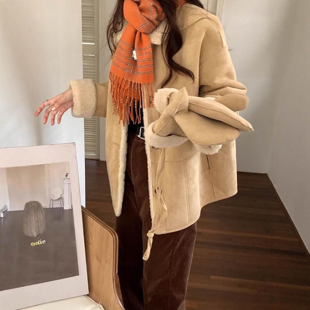 全臺熱銷🔥 韓系雙面穿皮毛一體羊羔毛外套女冬季新款寬松中長款麂皮絨大衣 (上衣/毛衣/長袖女裝/針織上衣)
