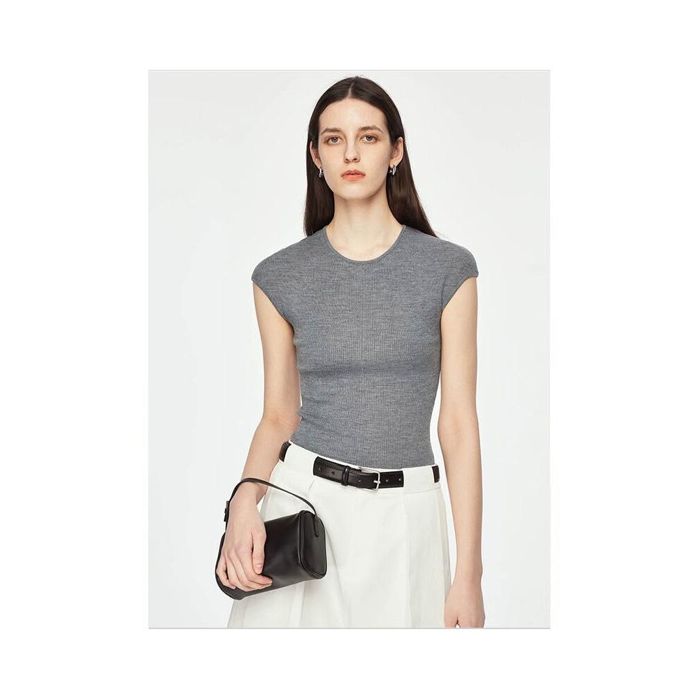 全臺热销🔥 直播熱賣德國揚子紗圓領小飛袖針織衫疊穿背心套頭修身顯瘦打底衫 (針織衫/女上衣/針織上衣/長袖上衣/長袖針織衫)