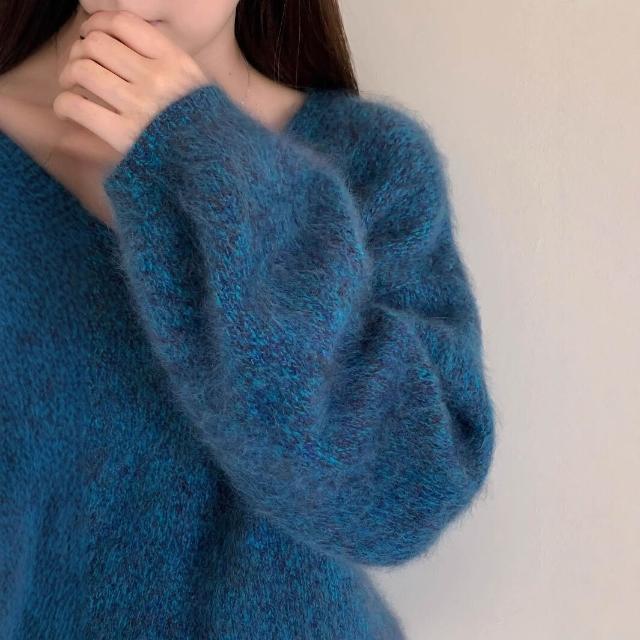 全臺热销🔥 濮院秋冬新款V領駝色羊毛衫拉毛女寬松打底針織衫毛衣 (針織衫/女上衣/針織上衣/長袖上衣/長袖針織衫)