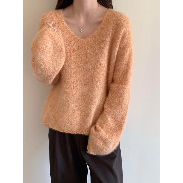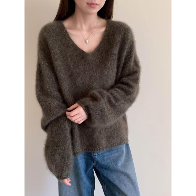 全臺热销🔥 濮院秋冬新款V領駝色羊毛衫拉毛女寬松打底針織衫毛衣 (針織衫/女上衣/針織上衣/長袖上衣/長袖針織衫)