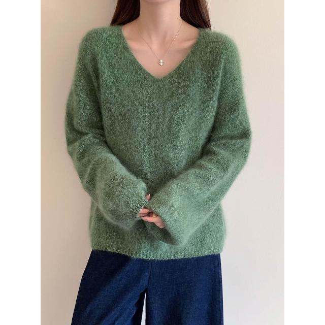 全臺热销🔥 濮院秋冬新款V領駝色羊毛衫拉毛女寬松打底針織衫毛衣 (針織衫/女上衣/針織上衣/長袖上衣/長袖針織衫)