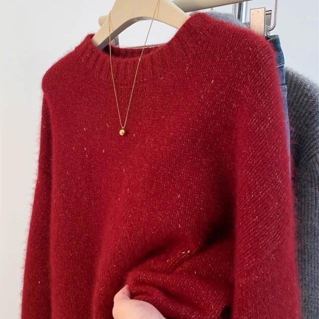 全臺热销🔥 聖誕紅色毛衣女亮絲羊毛衫25秋冬新款寬松軟糯本命年羊絨毛衣加厚 (針織衫/女上衣/針織上衣/長袖上衣/長袖針織衫)
