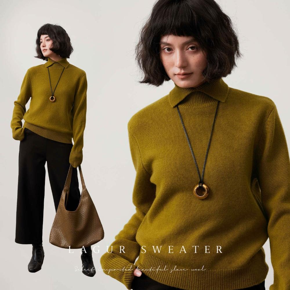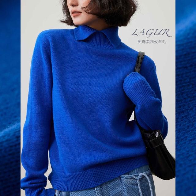 全臺热销🔥 Lagur愛爾蘭的藍~100%美利奴羊毛打底針織毛衣保暖內搭半高領冬女 (針織衫/女上衣/針織上衣/長袖上衣/長袖針織衫)