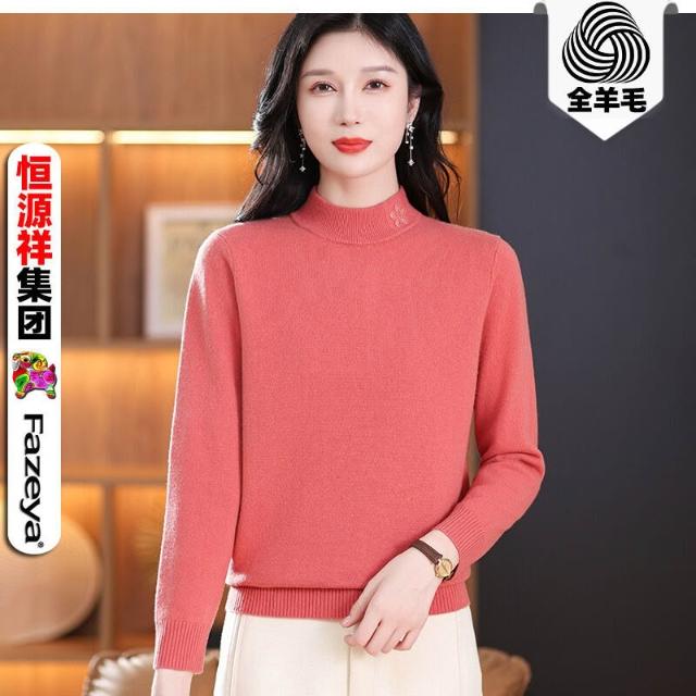 XUYU全臺热销🔥 恒源祥半高領100純羊毛衫女24新款套頭打底細羊毛毛衣純色針織衫 (針織衫/女上衣/針織上衣/長袖上衣/長袖針織衫)