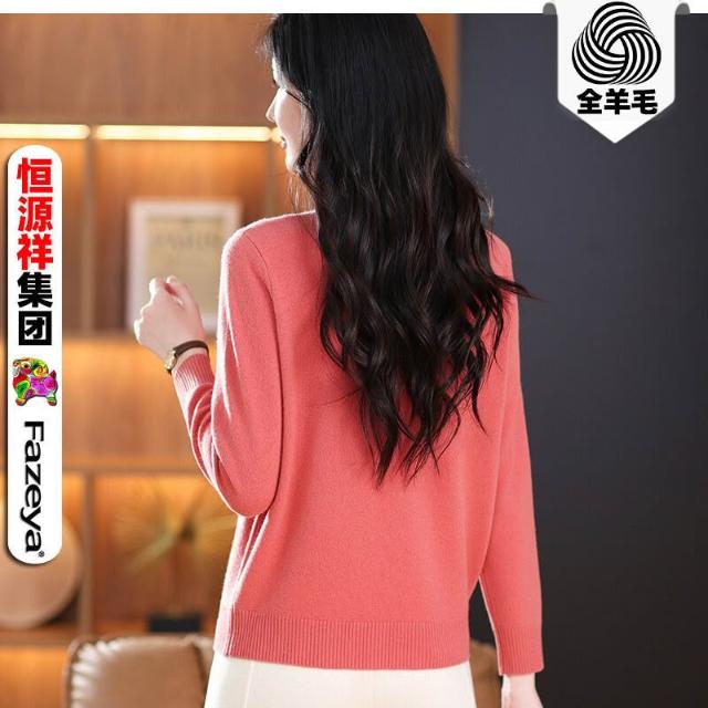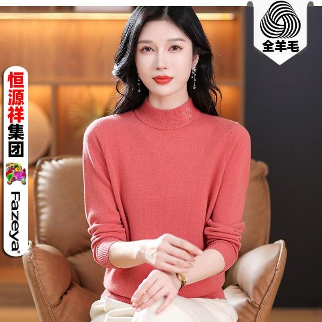 全臺热销🔥 恒源祥半高領100純羊毛衫女24新款套頭打底細羊毛毛衣純色針織衫 (針織衫/女上衣/針織上衣/長袖上衣/長袖針織衫)
