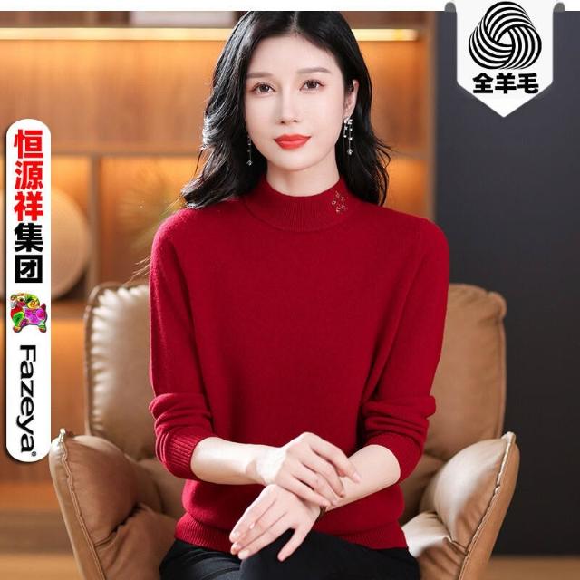 全臺热销🔥 恒源祥半高領100純羊毛衫女24新款套頭打底細羊毛毛衣純色針織衫 (針織衫/女上衣/針織上衣/長袖上衣/長袖針織衫)